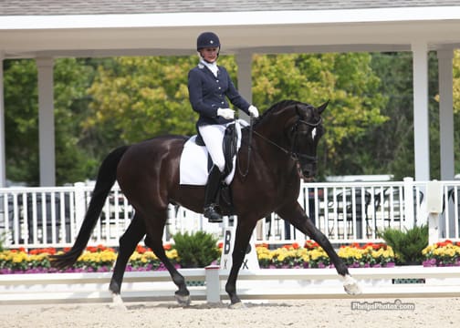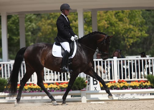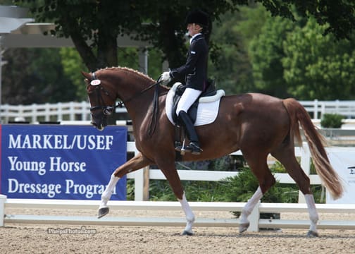 Photo: Alice Tarjan and Elfenfeuer (Florencio I-Elfensonne by Sion) win the Markel/USEF National Young Horse Preliminay test with a 7.66. (Photo Credit: Mary Phelps – phelpsphotos.com)