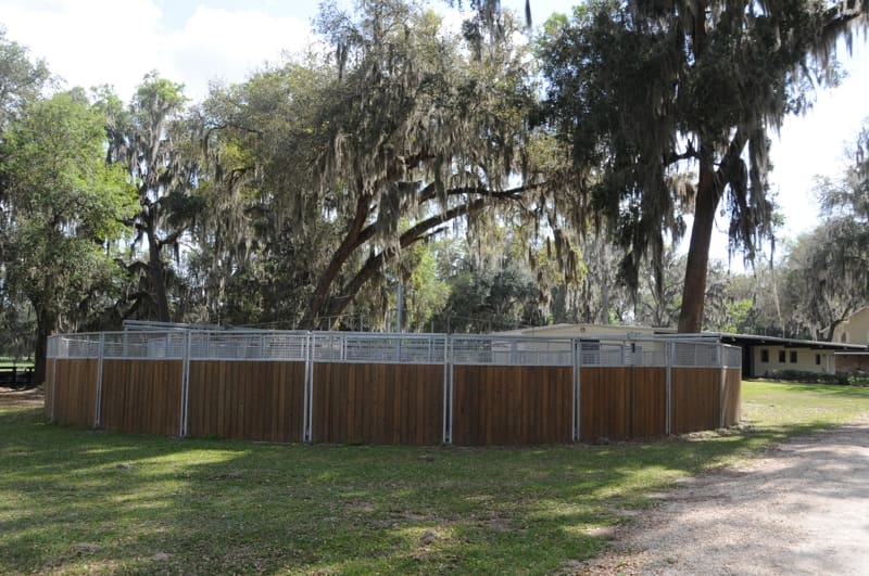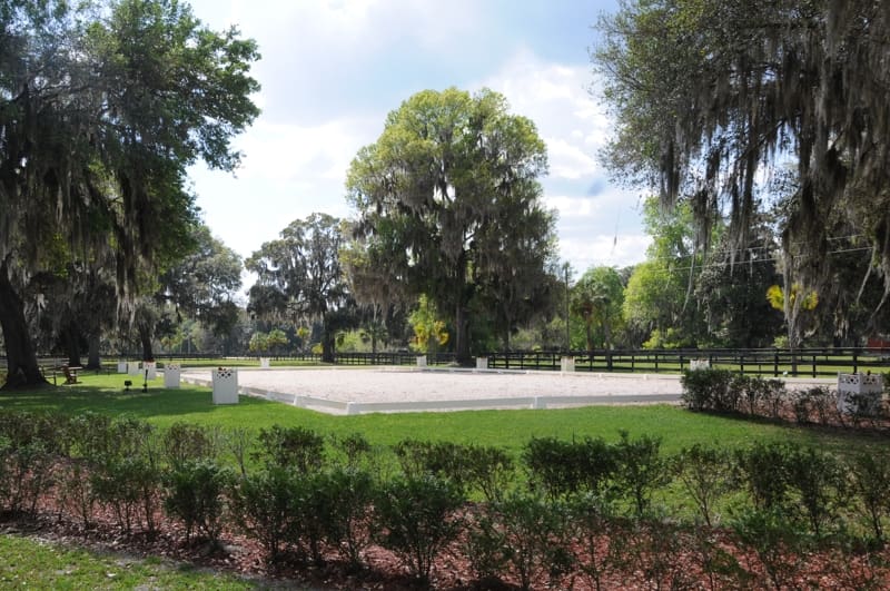 Citra, FL – A turn-key, 27+ acre horse farm will be sold at Auction on Saturday, August 2, 2014 at 2:00p.m. This beautiful property is sub-dividable and will be sold with all improvements. Amenities include a 5 bedroom / 3 bathroom 5,800 sq.ft. home with a heated pool, a 1 bedroom / 1 bathroom caretakers apartment with kitchen, a 12 stall European style stable, an Olympic size dressage arena with custom fiber footing, a tack room, waterers, a 4 horse European hot walker, an aluminum feed triangle, multiple paddocks, a large pond suitable for jet skis, and a large motocross track… all nestled among mature granddaddy oak trees.