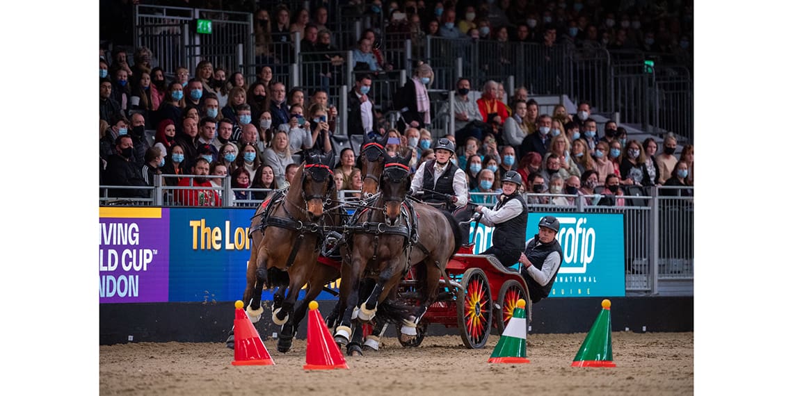 In an electrifying event at the ExCel Centre in London’s Docklands, Boyd Exell (AUS) blazed to victory on three occasions – but only just. In the closest contest of the FEI Driving World Cup™ 2023-24 series so far, the reigning champion was pitched against his two old adversaries, Ijsbrand Chardon (NED) and Koos de Ronde (NED), all on career-best form.