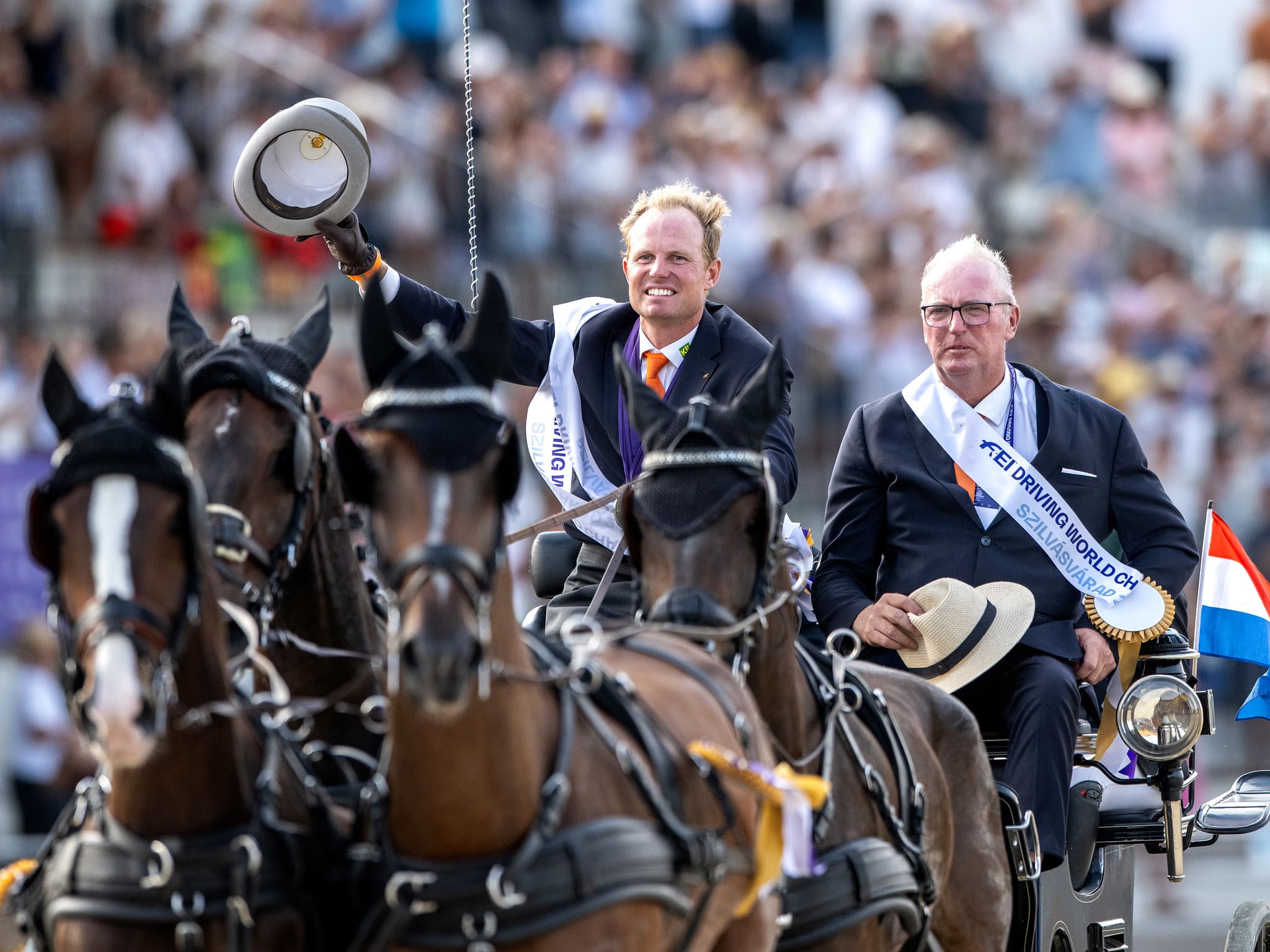 It has been a triumphant 26th Four-in-Hand World Championship and today the stadium buzzed with a 6,500-capacity crowd who relished the spectacle at the State Stud Farm. The organisers were thrilled to host the event 40 years after the historic 7th World Championship in 1984 when Lászlό Juhász won double gold. As the test driver here, he was celebrated alongside his fellow legendary Hungarian drivers throughout, from the opening to the closing ceremonies.