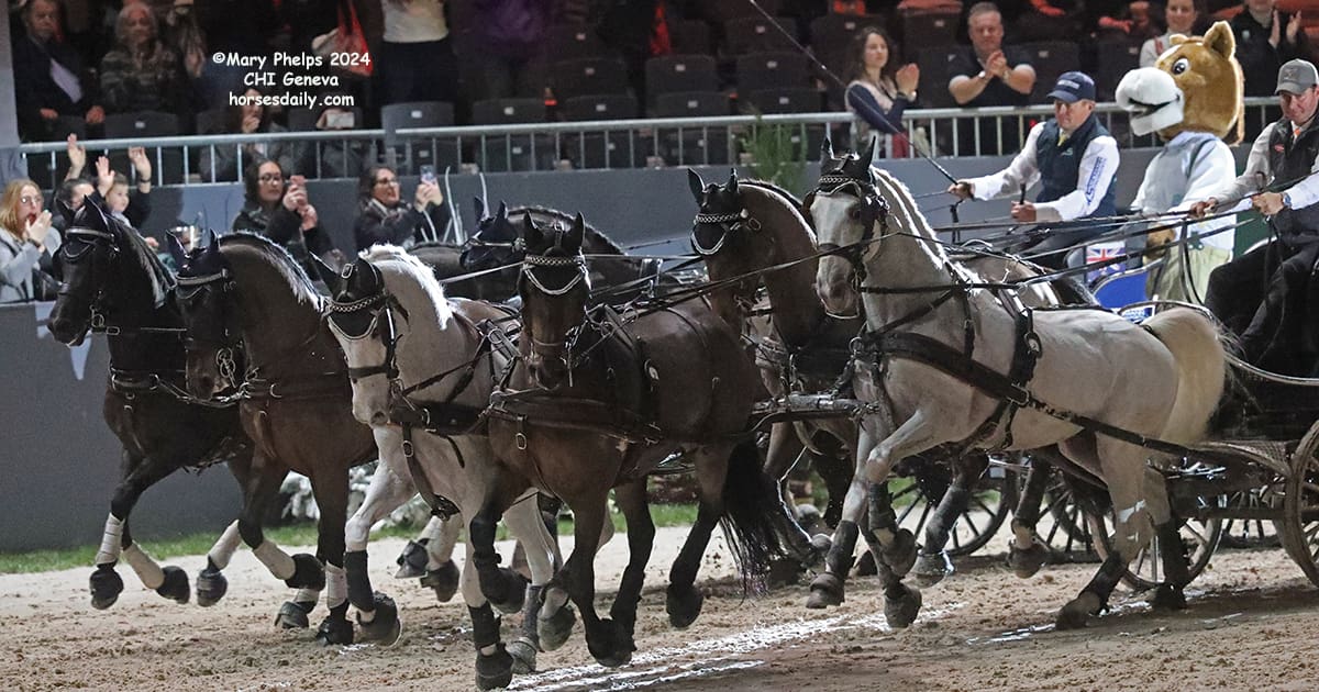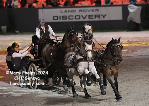 Winning both competitions in this fifth leg of the series in front of a packed Palexpo Arena, the Australian felt the pressure from a measured but strong Bram Chardon (NED), who saved his best ‘til last for the second drive-off. But Boyd and his powerful horses propelled their performance to another level when last to go, they went clear in 155.66, 5.51 seconds faster than Bram’s clear.