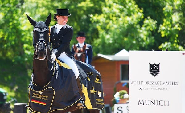 Munich, Germany – Richard Davison, last year’s winner of the World Dressage Masters Grand Prix Special did it again. Scoring highest of them all in the name-heavy starting field with riders like Tinne Vilhelmson-Silfvén, Patrik Kittel and Monica Theodorescu. He and his beautiful 13-year old gelding by Florestan, Hiscox Artemis, reached the scores of 73.467 % and showed the audience an almost perfect program with very few mistakes. The second place was taken by Minna Telde, Sweden and her black stallion Santana IIII who did his first Grand Prix Special and landed on the scores of 72.911% . Third place was taken by Danish rider Lone Jörgensen with her great mover FBW De Vito on 71.22%.{C}{C}Richard said before his start that his horse Hiscox Artemis never had felt as good as now. “It started in January this year. Suddenly he just exploded in talent and to be honest, his piaffe and passage tour has never been as good as now.” said a very happy Richard, who also performed well in yesterday’s Grand Prix and explained his start in today’s Special: “I was asked to ride the Special by my team back home, to be able to have the points from a GP Special. Of course I would have loved to ride the freestyle here, but since this was a request I couldn’t say no to, I agreed and now I must say, it doesn’t feel bad at all.”