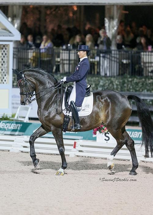 A field of eight Small Tour combinations began the quest for National honors on Wednesday in the FEI Prix St. Georges Test, which contributed 40% towards their final scores. Vinios (Wellington, Fla.) and her own Folkestone OLD took an early lead, winning the class with a score of 70.632%. The following day the competitors performed the FEI Intermediate I Test for an additional 45% of their overall scores. Jane Karol (Concord, Mass.) and her own Sunshine Tour performed brilliantly to win the class on a score of 69.105%. Vinios finished closely behind Karol on day two and maintained her division lead heading into today’s Freestyle.