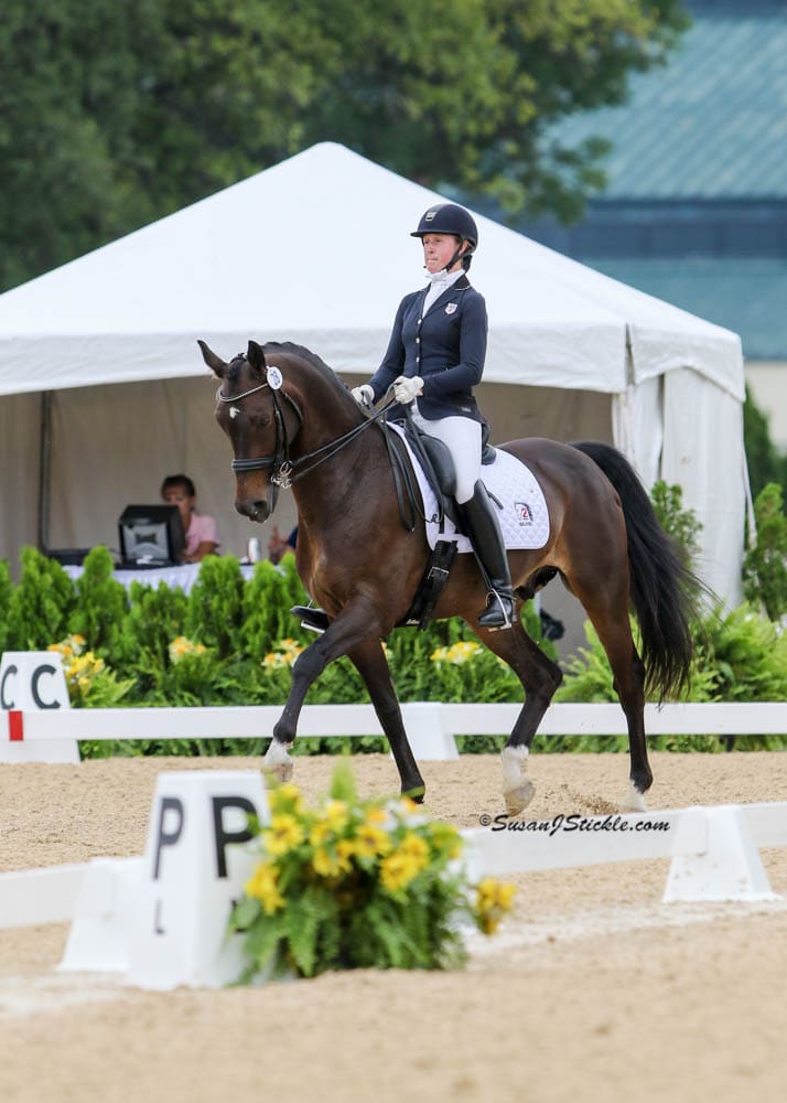 “I would like to continue to work toward a more a forward, fluid and ‘floaty’ test as well as becoming more effective and sharper with my aids,” she explained. “I think as you go up the levels, the amount of space to make adjustments becomes smaller. I would also like to become more gutsy in my tests and really go for it!”