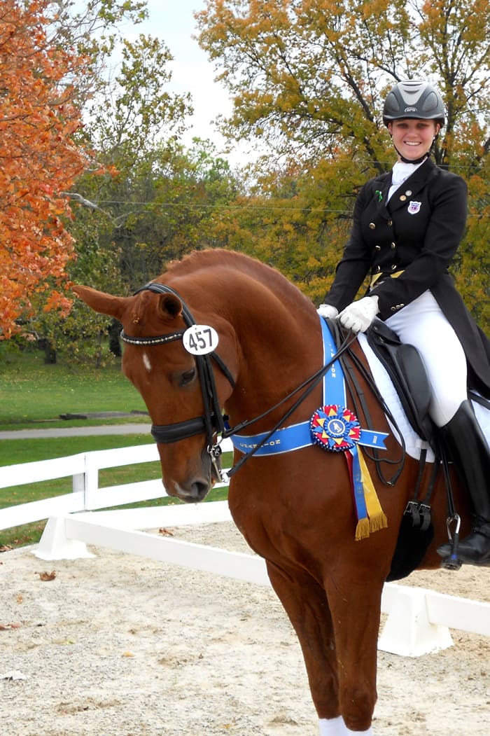 Maura first started riding with us when she was 14 on her back yard Hanoverian cross gelding, who was not particularly suited for Dressage. We helped her find Pik Czar, who competed to the Intermediare 1 level. We feel it is vital for Juniors/Young Riders to learn from schoolmasters that can teach them. Maura’s riding sky rocketed, after starting out with Pik Czar at First Level the first season, and she progressed to Juniors the following year and then Young Riders the next.