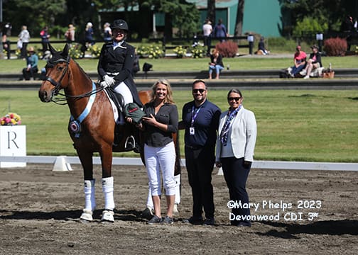 Noah, is a force in US Dressage as an organizer, announcer, and USDF Region 6 Director. With his loyal team hovered every detail including producing perfect weather for three days of competition. Drawing competitors from Region 6,  Idaho, Oregon, Washington, and Western Montana, the only CDI 3* in the Pacific Northwest also attracted a large Canadian contingency.