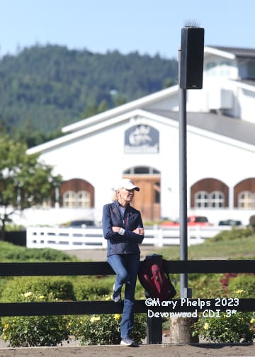 The previous week DevonWood hosted a National show, and those who could, traveled, and stayed nearby to compete again, or volunteer. The region is flowing in wine, with multiple vineyards less that a thirty minute drive. Nadine Schwartsman, from Eagle, Idaho travelled from her farm LeBoise Dressage. “I brought the horses and clients last week and helped Noah with his show, rode this week in the CDI, and next week we will be hosting our own show, which Noah organizes for us.”