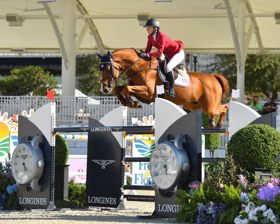 Hopes for an American win on opening day were dashed, however, when Whitaker, the final challenger, left all the rails in place and stopped the clock in 33.64 seconds riding Millfield Colette. The win marked not only his first at World Equestrian Center – Ocala but also his first on American soil.