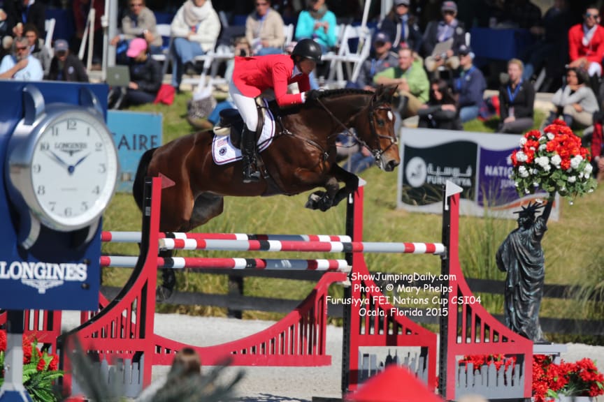 Ocala, Fla. – The U.S. continues to lead the North and Central America & Caribbean League in qualifying for the Furusiyya FEI Nations Cup Final presented by Edge Brewing Barcelona after earning 100 points on Friday. “There were a couple of odd things that happened today, but thank goodness for Georgina (Bloomberg) and Beezie (Madden) with their double clears,” said Ridland. “Our number one priority was to get qualifying points (for the Final) and we did that.” The Hermès U.S. Show Jumping Team put forth a determined effort in Friday’s Furusiyya FEI Nations Cup presented by Edge Brewing Barcelona at CSIO4* Ocala as they jumped to a second-place finish over Martin Otto’s 12-obstacle course. Led by Chef d’Equipe Robert Ridland, the squad of international veterans finished on a score of eight faults over the two rounds, just four faults behind the winning Irish Team, with Colombia finishing third on 12 faults.
