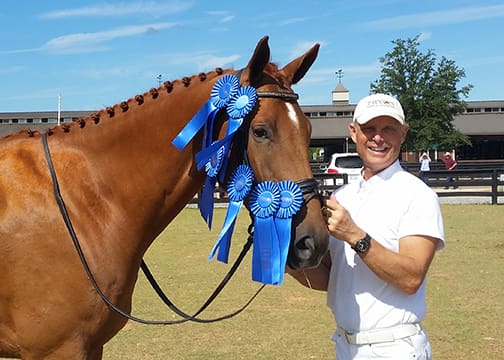 In the 1990s, he actively showed horses such as Joyce Hardesty’s Hanoverian Dacapo, Virginia Fox’s Oldenburg Imperiale (by Inschallah AA),