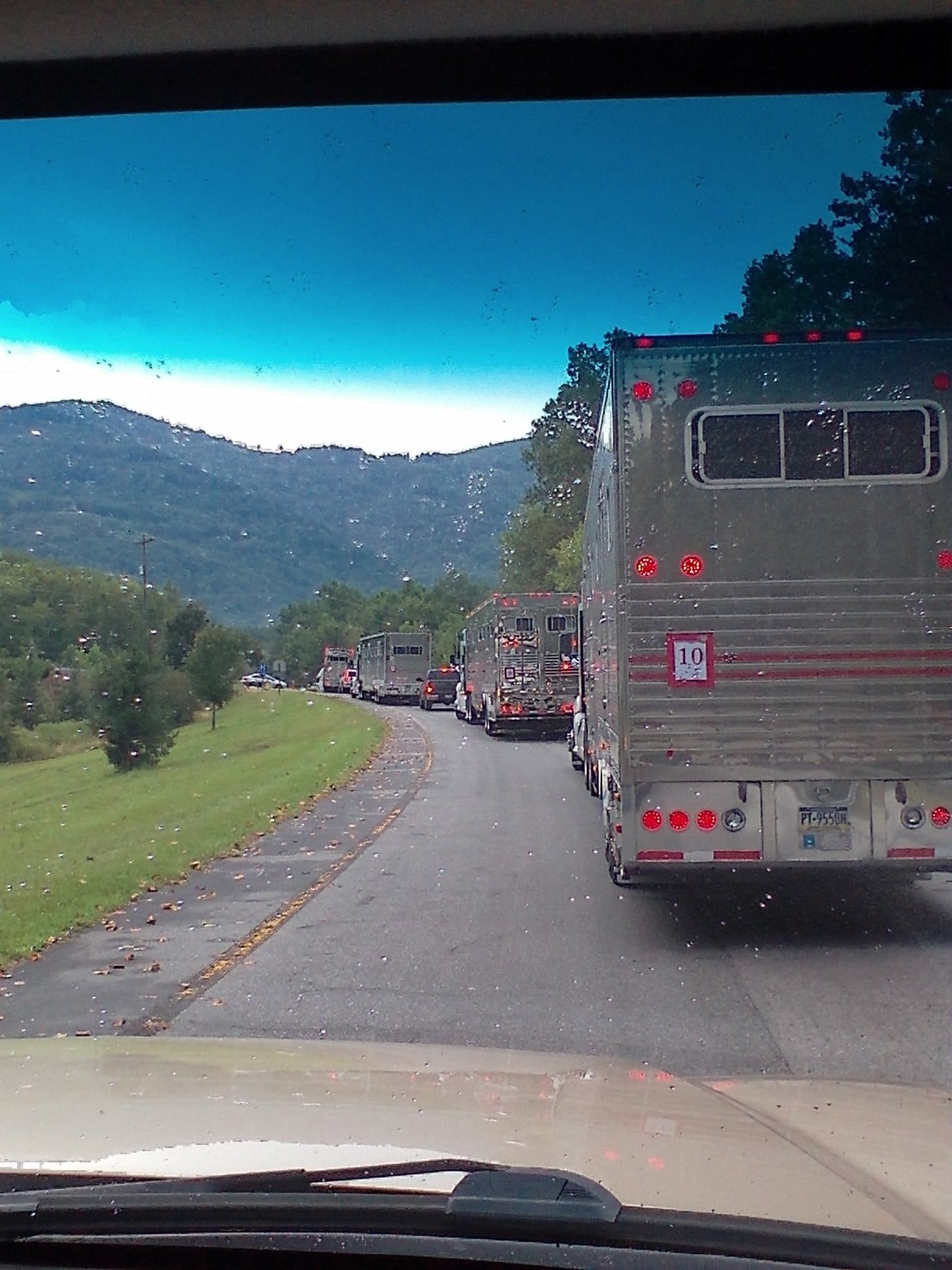 The first load of horses have arrived and are being escorted by the PEER people as they head to the Tryon International Equestrian Center.