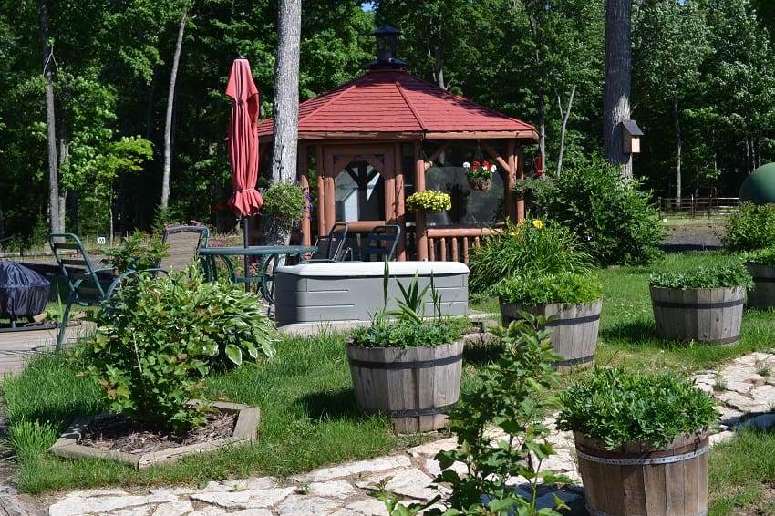 Additionally, there are 5-10×12 outdoor stalls (additional 2-10×12 areas are set up for stalls but now used for equipment storage) which have individual lighting and fans, a fenced 62’x132′ outdoor arena (sand footing) which is lit and wired for a sound system, wood deck with brick fire pit and log screened gazebo complete with lighting.