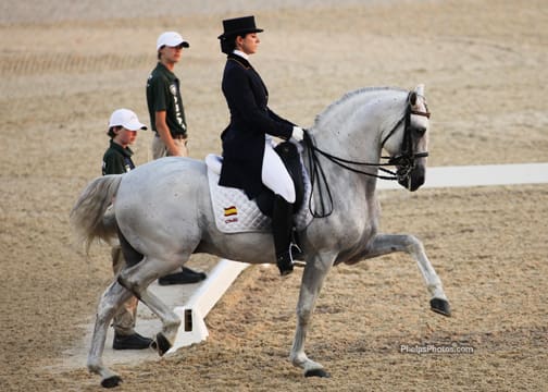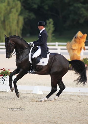 Lexington, KY. – For the first time in its history, the Kentucky Dressage Association (KDA) held a CDI *** during its 26th annual competition, May 24-27, which drew riders from Canada, Spain, and throughout the nation, vying to qualify in the sport for the 2012 Olympics. “I love coming here,” said Canadian Olympic contender David Marcus. “It’s a great place, the management has been very accommodating and the (arena) footing is world class.” Saturday evening’s FEI Freestyle and CDI*** FEI Grand Prix Freestyle classes wowed the crowd with great rides and entertaining music. American Pierre St Jacques, riding his horse Lucky Tiger, won the CDI*** FEI Grand Prix Freestyle with a terrific score of 71.15 percent. Canadian rider Jaimey Irwin took second with a score of 69.8 percent and Canadian David Marcus on Don Kontes took third place with a score of 68.12 percent. Equestrian Lakes sponsored the four-day show at the Kentucky Horse Park, which drew a record number of riders from across the United States, Spain, and Canada competing for trophies, ribbons and prize money. The show was one of the final opportunities for top North American riders to qualify for the London Olympics in July. In addition to the international competition, the show included a spring warm up during the first two days. Thursday and Friday’s warm-up show featured 58 classes in five different rings, including the Rolex Arena with over 500 rides.