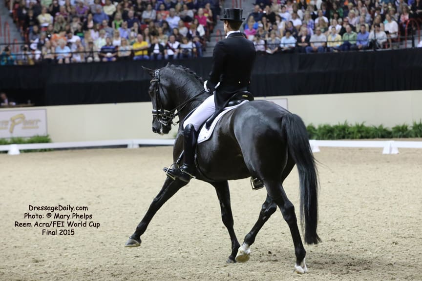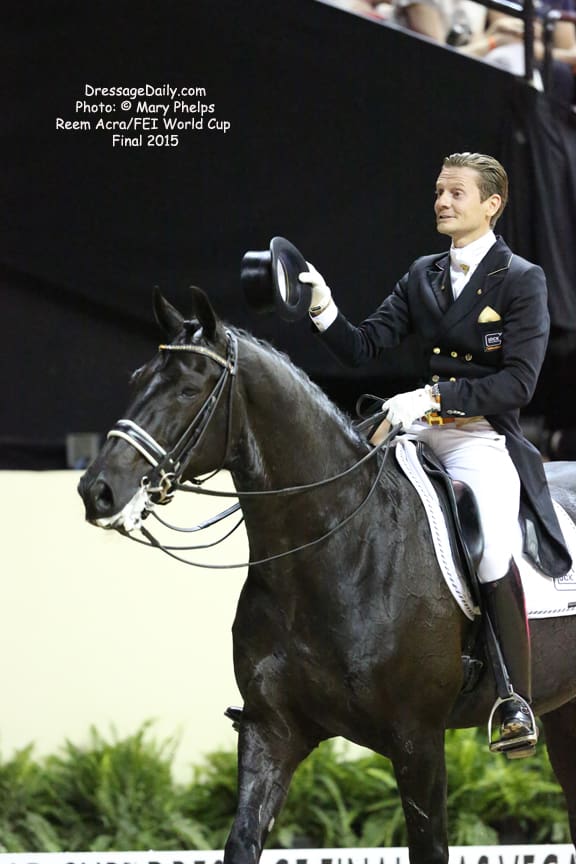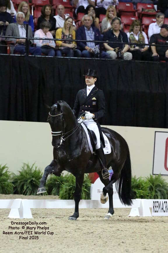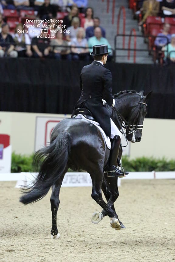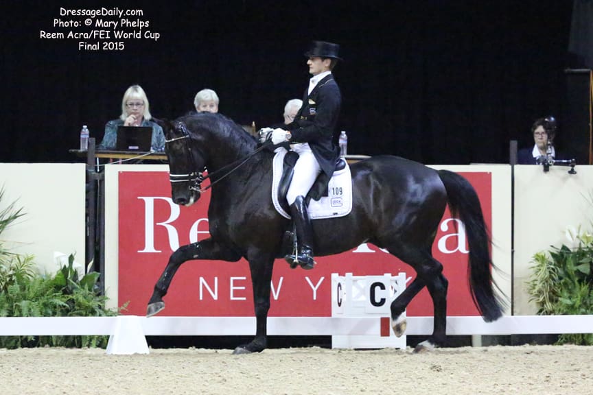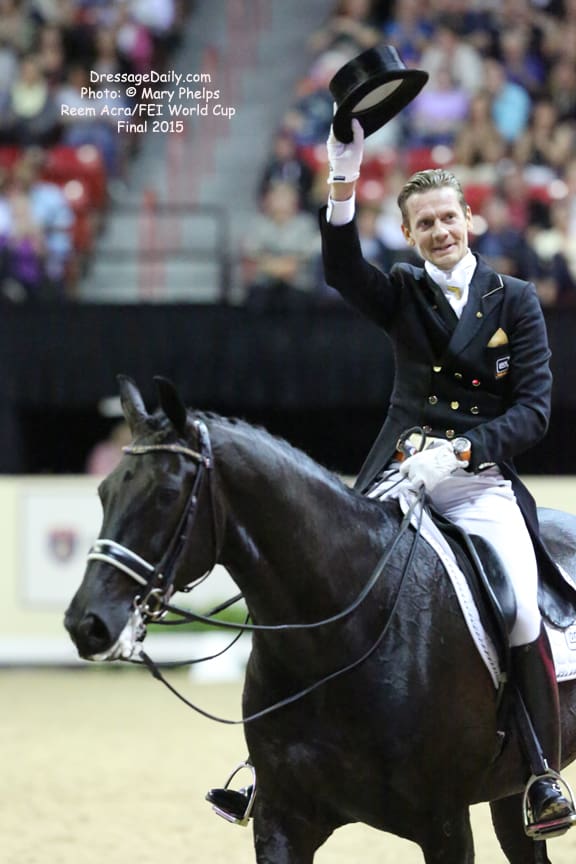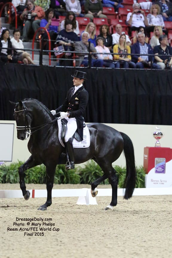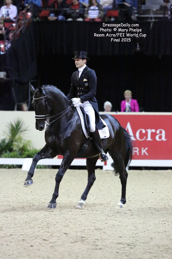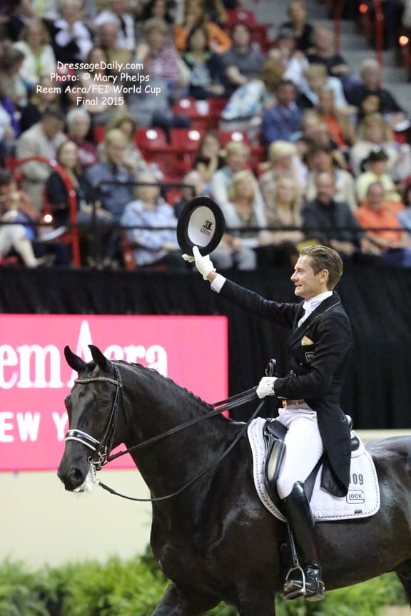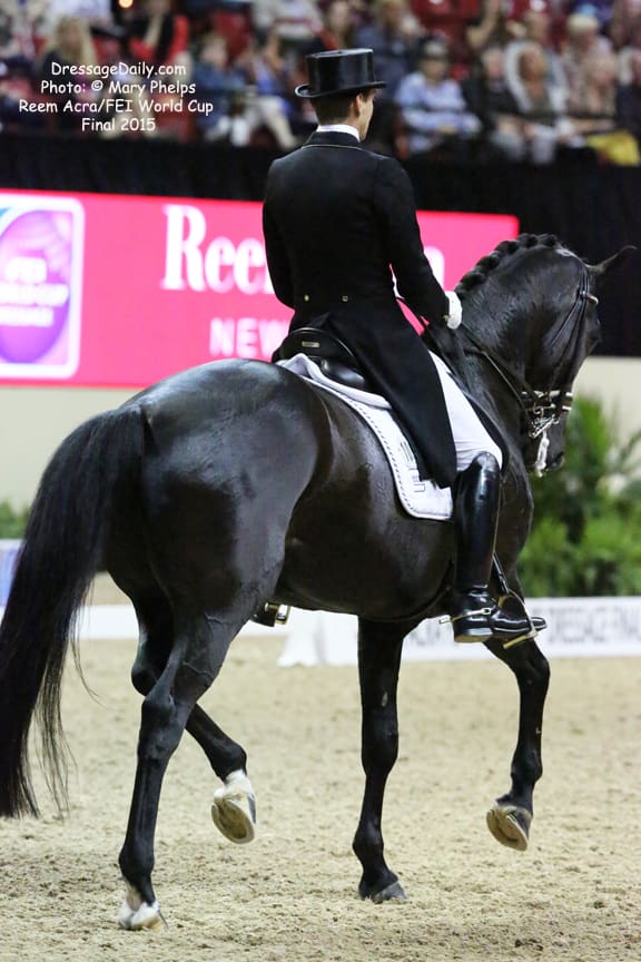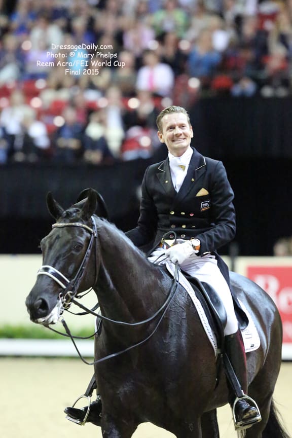 “This is where dressage becomes art,” is what Axel Steiner, retired O judges and official commentator for the 2015 Reem Acra/FEI World Cup Final, Las Vegas, while watching Edward Gal (NED) and Glock’s Undercover N.O.P. The sensitive 14-year old KWPN gelding by Ferro out of a Donnerhall mare and owned by Ghpc Holding Bv. Masterfully ridden by Gal, finishing second place to the unbeatable Valegro and Charlotte Dujardin (GBR) in the FEI Grand Prix Freestyle with a stunning result of 84.696. Former World and FEI World Cup Champion Edward Gal of The Netherlands made his third trip to Las Vegas to compete in his ninth FEI World Cup Final. Gal and Glock’s Undercover, won team Bronze medals at both the 2014 World Equestrian Games and the 2012 Olympic Games in London. View the image gallery
