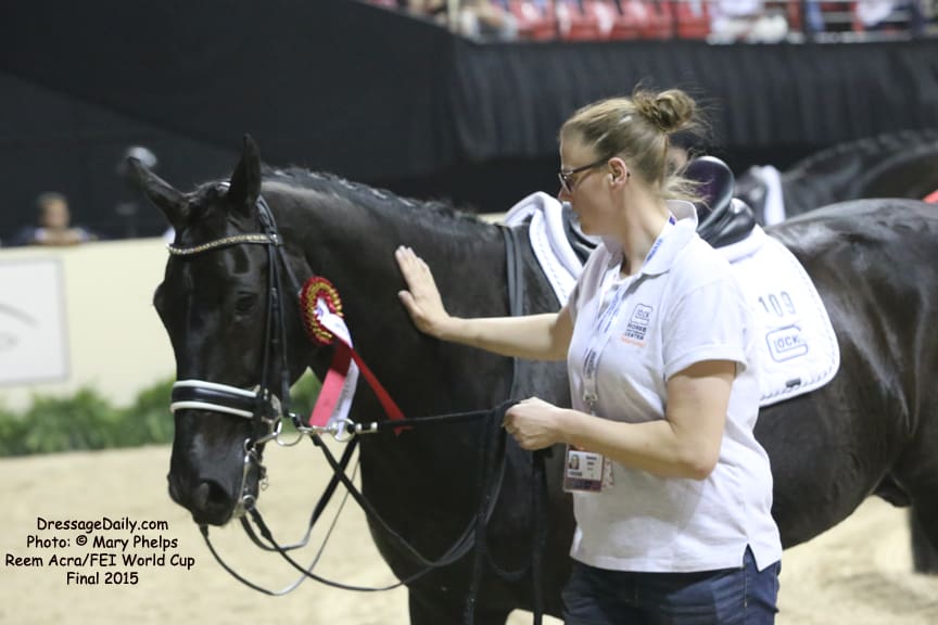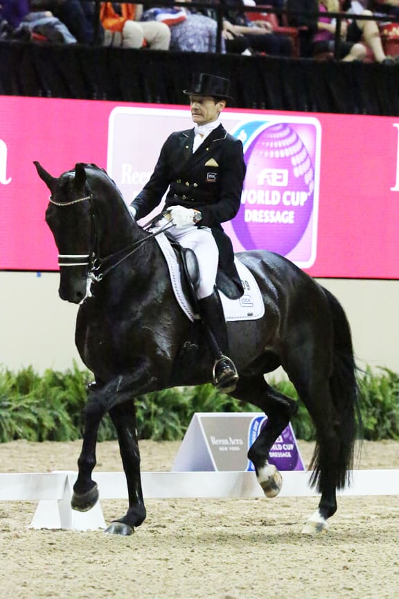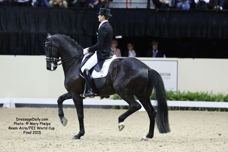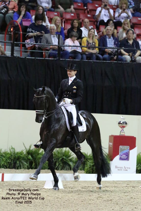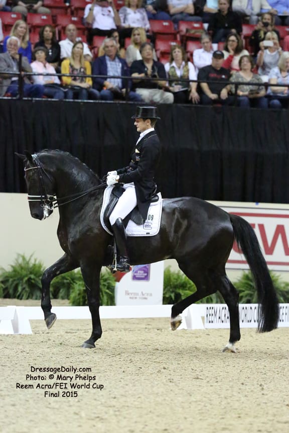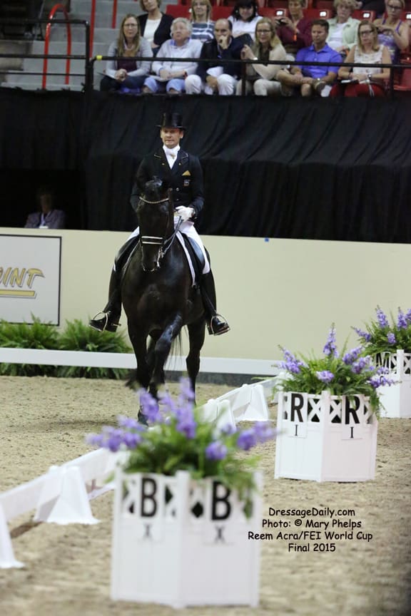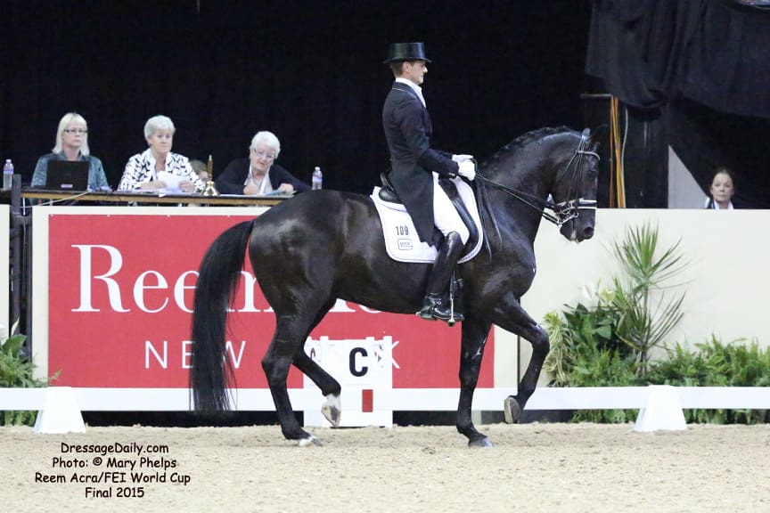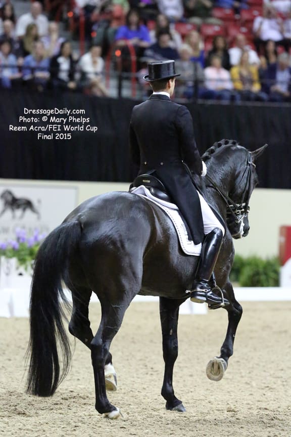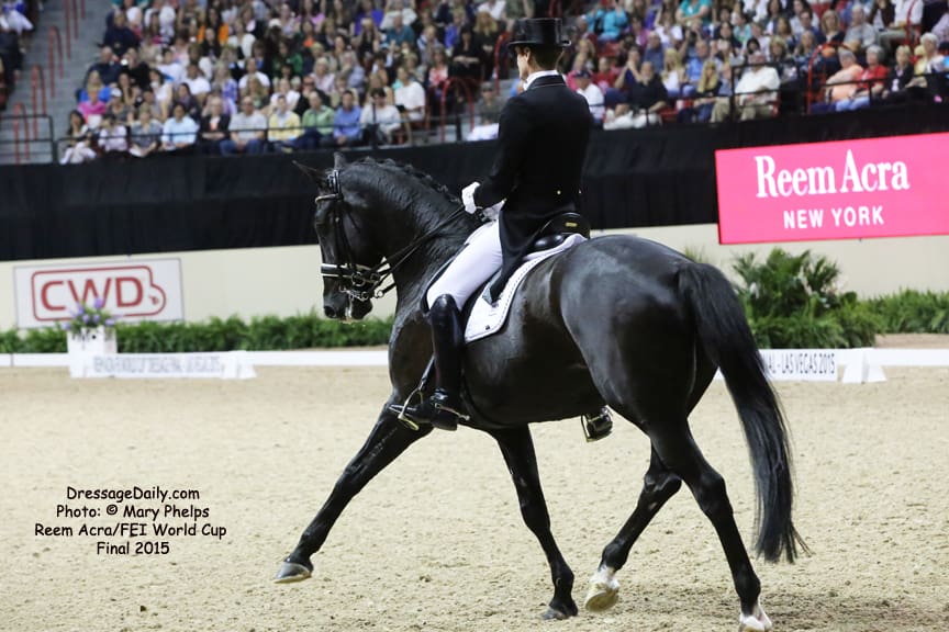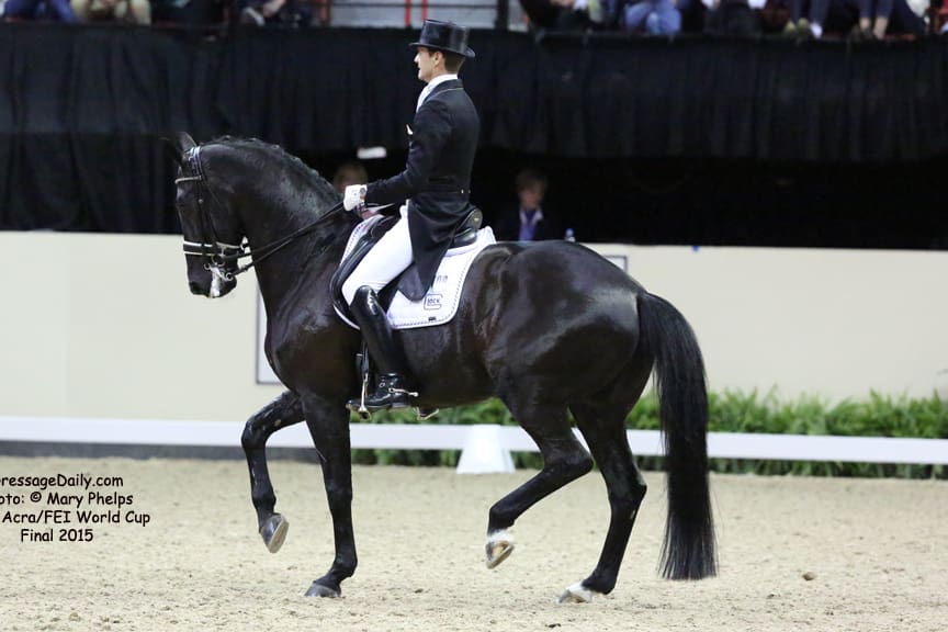 “This is where dressage becomes art,” is what Axel Steiner, retired O judges and official commentator for the 2015 Reem Acra/FEI World Cup Final, Las Vegas, while watching Edward Gal (NED) and Glock’s Undercover N.O.P. The sensitive 14-year old KWPN gelding by Ferro out of a Donnerhall mare and owned by Ghpc Holding Bv. Masterfully ridden by Gal, finishing second place to the unbeatable Valegro and Charlotte Dujardin (GBR) in the FEI Grand Prix Freestyle with a stunning result of 84.696. Former World and FEI World Cup Champion Edward Gal of The Netherlands made his third trip to Las Vegas to compete in his ninth FEI World Cup Final. Gal and Glock’s Undercover, won team Bronze medals at both the 2014 World Equestrian Games and the 2012 Olympic Games in London. View the image gallery