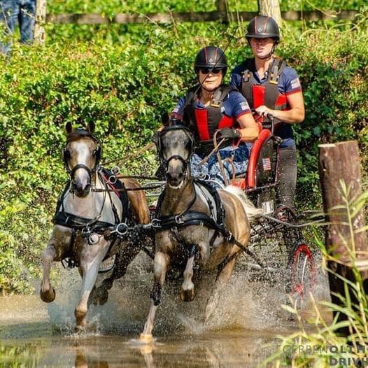 Kimba came to Mary via the Kentucky Horse Park whho rescued her from the Kentucky Equine Rescue where she was donated. With Mary she became a brilliant driving pony in both the pairs and four-in-hand competitions. The highlight (one of many) of Kimba’s career, undoubtedly, was when Kimba and Al Capony represented the USA and became the World Champion Pony Pair for the Cones at the FEI World Driving Championships for Ponies 2019.