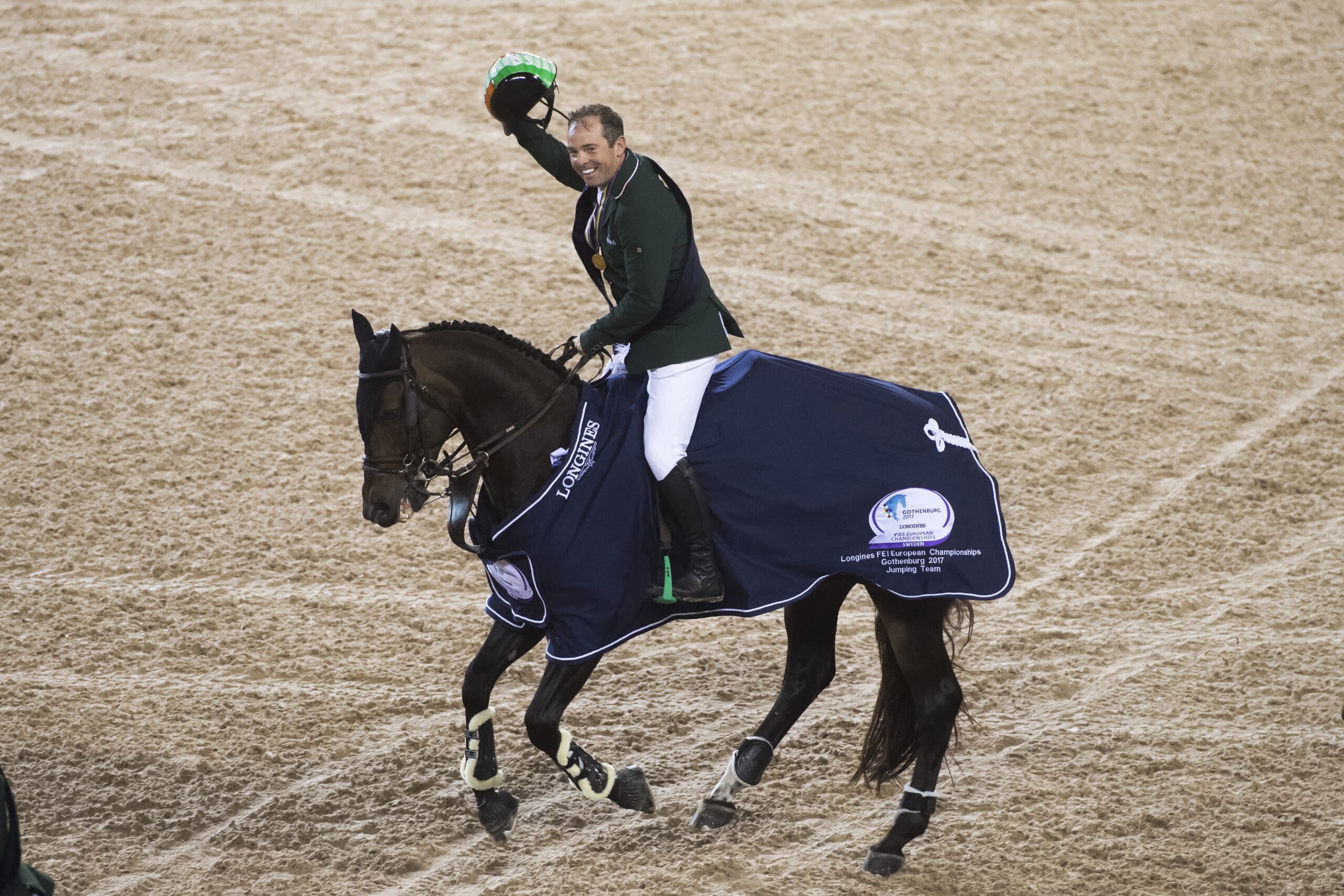 It was Jumping team gold for Ireland at the Longines FEI European Championships in Gothenburg, Sweden tonight where Shane Sweetnam (36), Denis Lynch (41) and Cian O’Connor (37) clinched victory with three superb clear rounds.