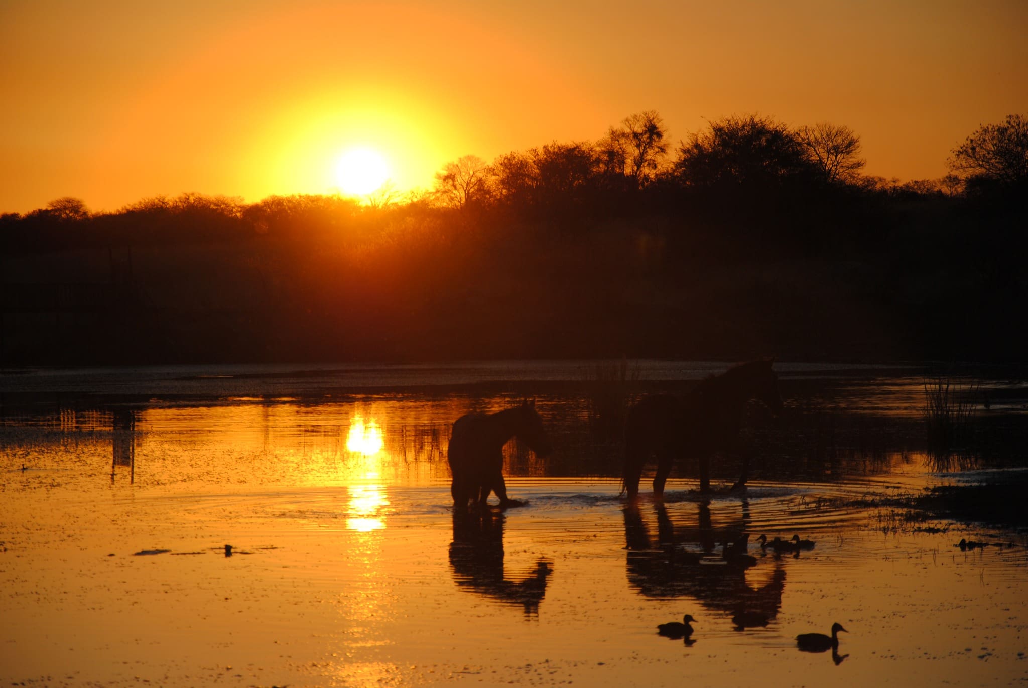 - Swimming horses in the lake