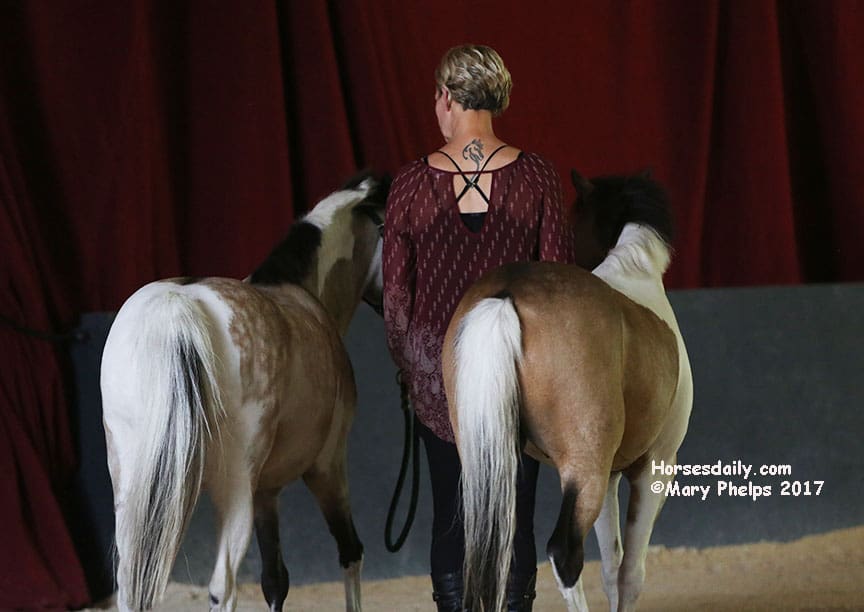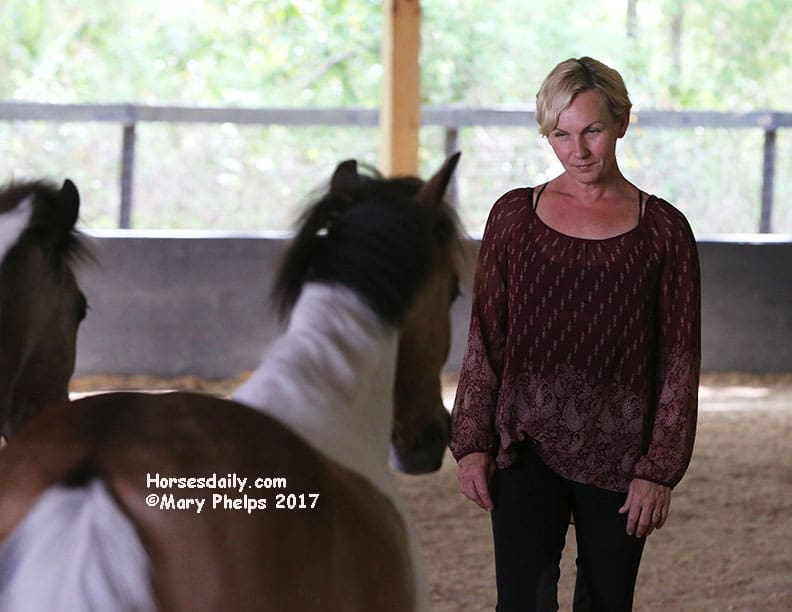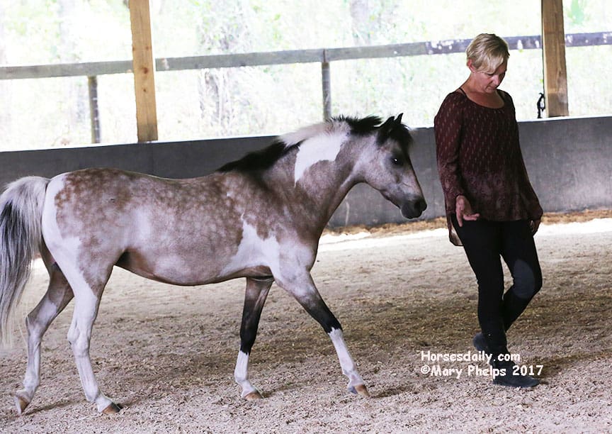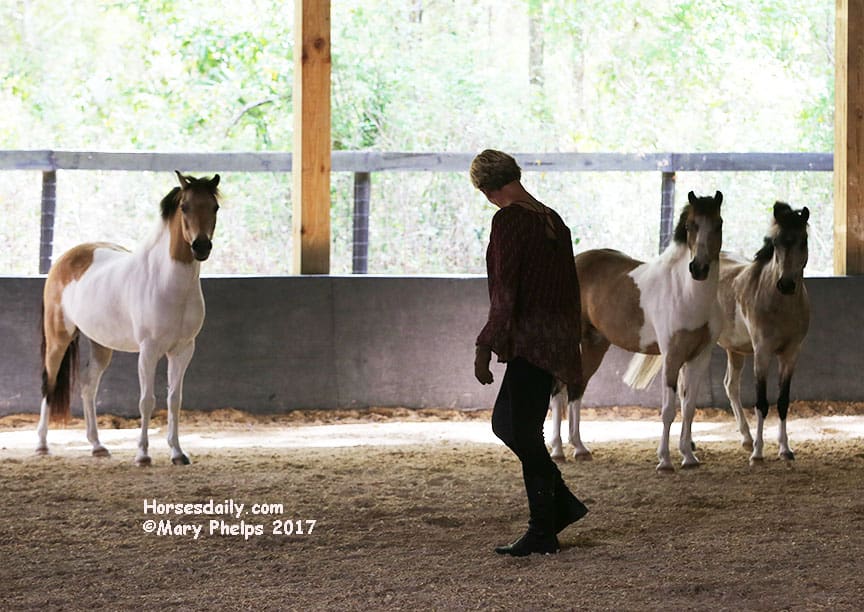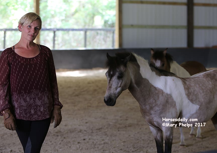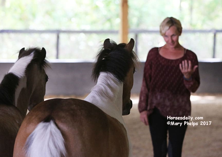 They had a blast romping in the arena as Sylvia chatted with us, telling us her story and watching the ponies as they romped and rolled. “I hope they will have some energy by the time we start to work,” she commented. “Not to worry about that,” I replied.