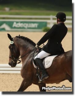 Jonathan Wentz, age 20, from Richardson, TX and Sydney Collier, age 13, from Michigan had to draft their music and choreography long distance but pulled off a successful and impressive Freestyle to open the final phase of the North American Junior and Young Rider Dressage Championships making a bid for para equestrians to be included in the NAJYRC in the future. Wentz rode as the youngest member of the four member USA Team at the 2010 Alltech/FEI World Equestrian Games piloting NTEC Richter Scale, a Shire Cross owned by Kai Handt, to an 11th place finish in the WEG Freestyle. “I have a tremendous desire to grow my sport and give younger para riders opportunities that I didn’t have. Para means parallel and it would be a tremendous step toward parallel levels of opportunity to have Para dressage added to NAJYRC,” says Wentz.