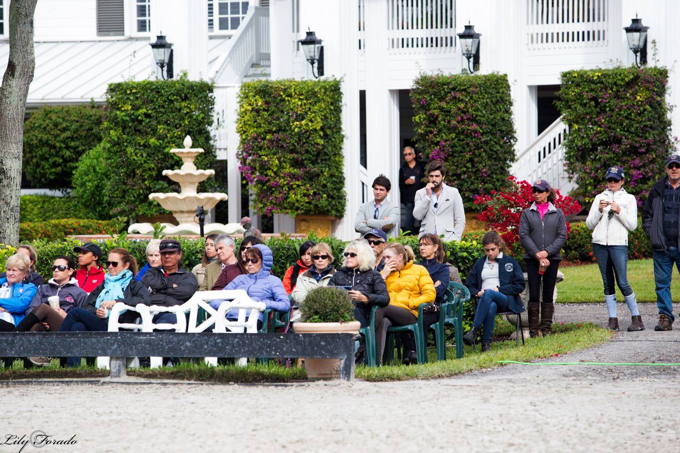 On Friday morning, at the premises of Hampton Green Farm, a dressage seminar led by Juan Manuel Munoz was held for 60 auditors and four horse/rider pairs. Two of the morning’s horses were young horses, illustrating the early training of an international potential PRE horse. A son of Jose Mena’s Norte de Lovera, also named Norte, was ridden by Beatrice Boucher along with a daughter of Bolero CXVLIII (who is currently competing at Grand Prix by Jose Daniel Martin Dockx) named Barbara HGF, ridden by Maria Lithander. Two more experienced horses– Armas Zumbel, formerly competed internationally by Cris Duran and ridden by Janne Rumbough, and Quintanillo JJ, recently imported by Hampton Green Farm. Carmen Elisa Franco did a great job as a translator.