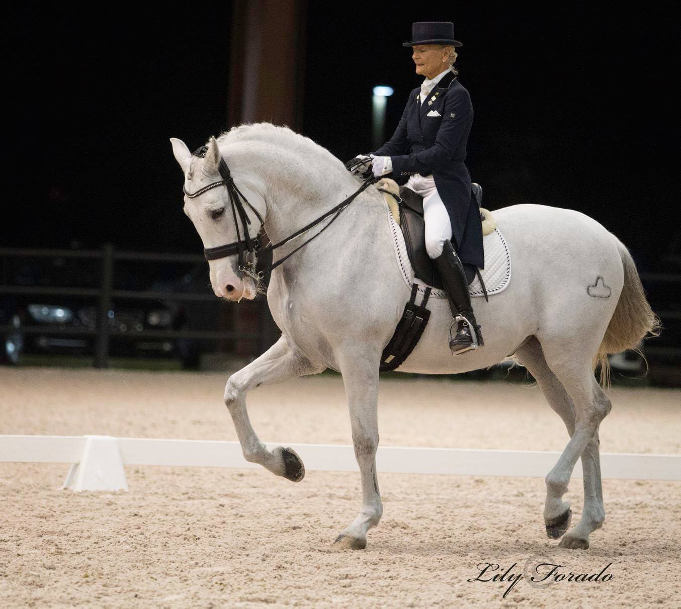 The first to go was Jacqueline Cuddy who made a Grand Prix Freestyle with Malcarat, a two-time champion of the Copa USPRE. Debra Cooper Phelan delighted the audience with a Western Dressage ride, accompanied by singer and “American Equestrian Got Talent” finalist Jenna Wyatt. Young Rider medalist Kerrigan Gluch with HGF Brio rode a Freestyle featuring the U-25 exercises to a soundtrack of Sky Full of Stars by Coldplay. Last but not least, the performance of two sons of the famous stallion Gaucho IIII were presented, along with the experienced Spanish rider and horse lover Janne Rumbough who rode Junior, and up-and-coming international pair Emily Copeland with Festivo RS.