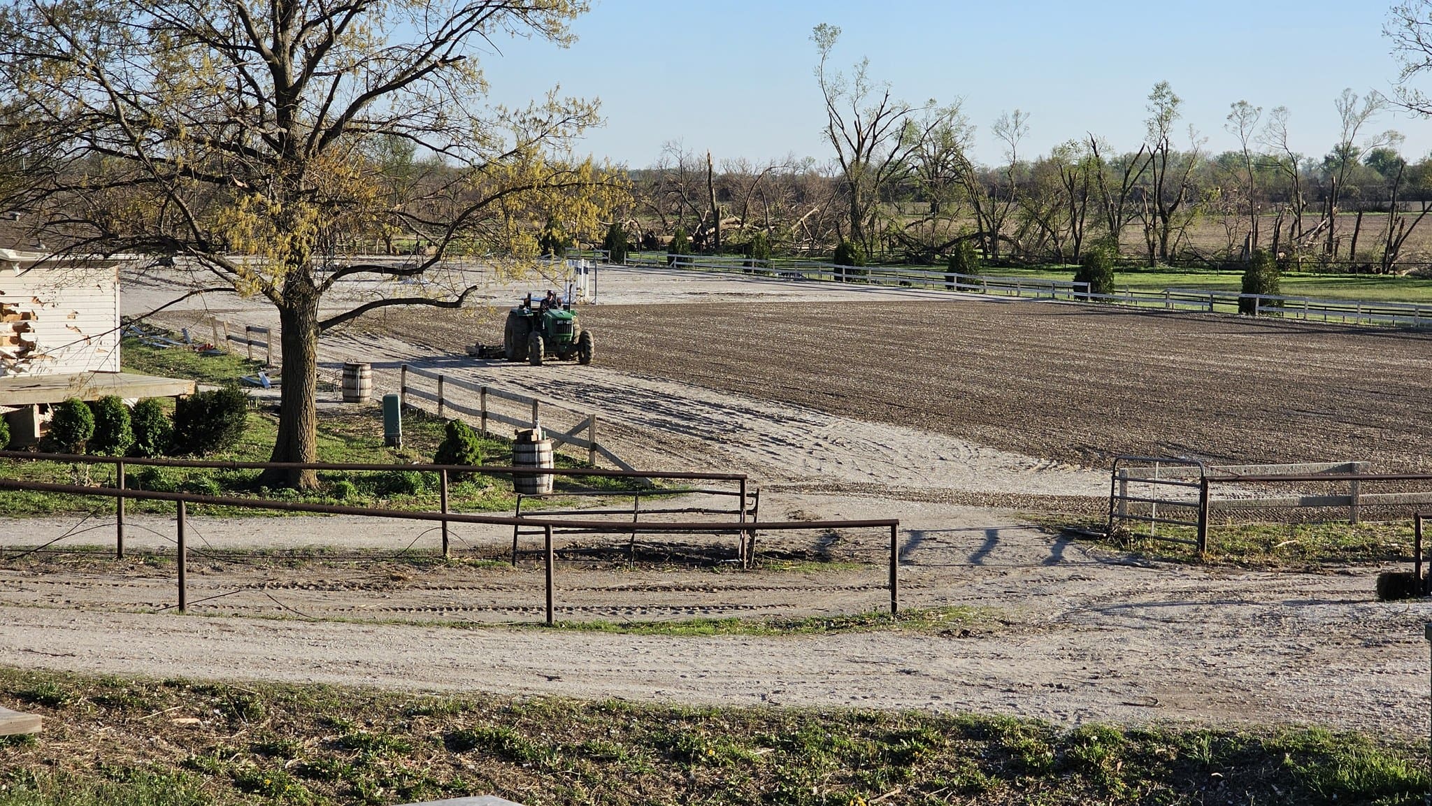 “It has been almost 3 weeks since the April 26th EF 3 tornado was a direct hit at Quail Run Horse Centre in Elkhorn, NE. First I would like to thank everyone for the emotional and financial support. Your kindness has made this disaster easier for all of us. We have welded pastures fencing, started to remove 10 acres of tree debris, clean debris and trash from 2 of our show arenas. The Grand Prix field took the biggest hit and will take more time to be considered safe for the horses. The volunteers from our community has been heartwarming and so helpful.