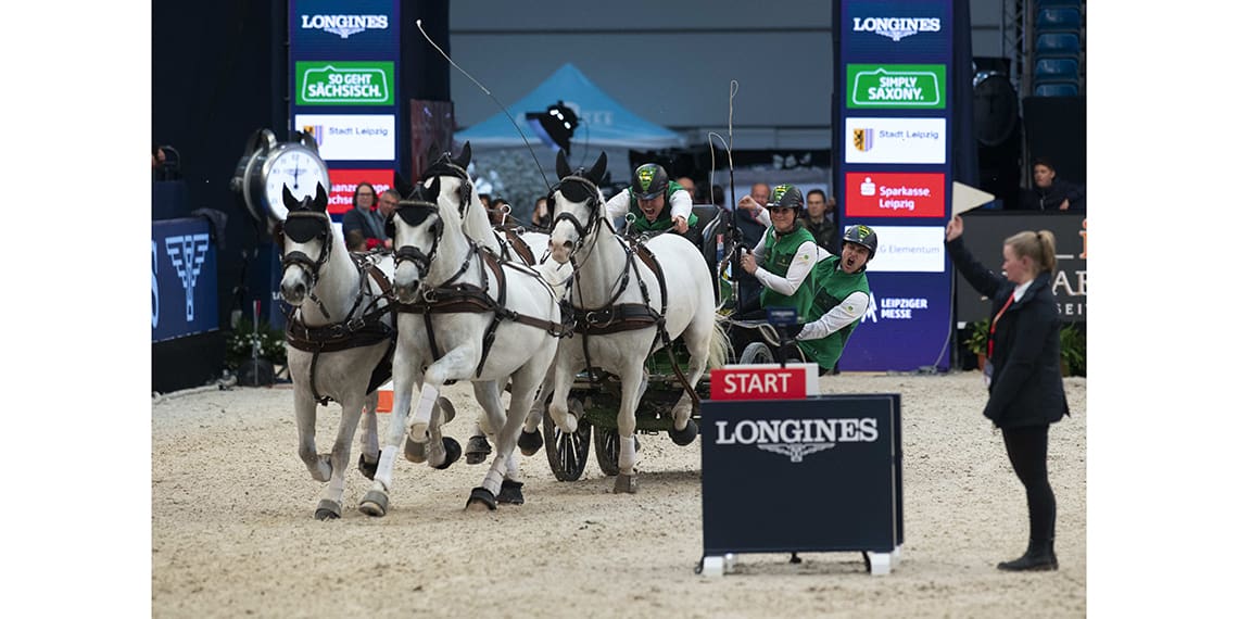 Growing more cohesive with each outing, Georg von Stein (GER) and his horses powered through the course for a fourth on the second day in 131.56, which included four penalties. He swapped places with a frustrated Glenn Geerts (BEL), who entered as a wild card and narrowly missed the first drive-off by only 0.13 for fourth on Sunday; he was fifth on Monday with 132.40, just 0.84 behind Georg. Both had four to add to their times, and both will be in Leipzig, although Georg has finished his season as a qualified driver and will be a wild card, but Glenn can still gain ranking points.