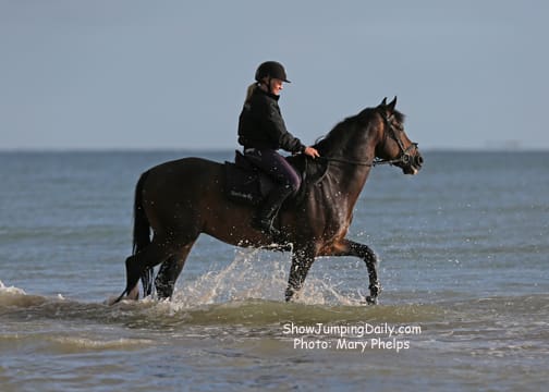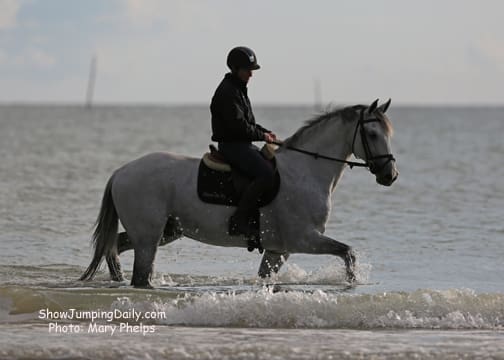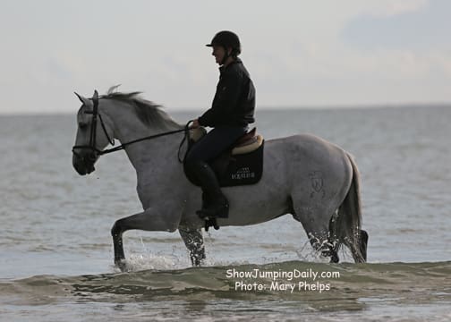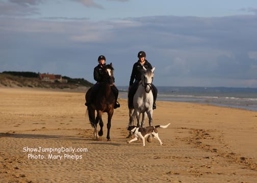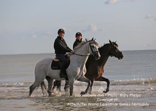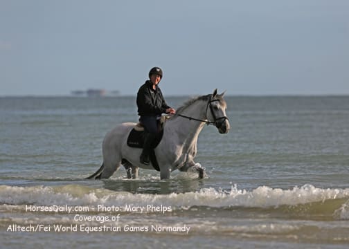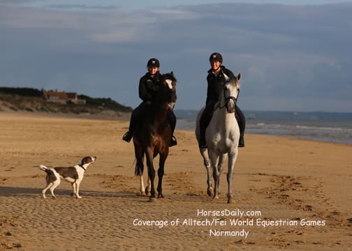 I did not know this when I made arrangements to be here last year, but we are right smack dab in the middle of all of the D-Day Beaches, tours, and history. In fact I use The Normandy Tank Museum the landmark for giving directions to get here, just 5 minutes away. At The Haras Du Ry, near Carentan, Australian show jumper Amy Graham and her family own a beautiful facility, complete with large and lovely “Gites” rented to visitors including the cast and crew of “The Band of Brothers” rented as well as a complete equestrian training facility in the heart of Normandy. We began our self guided tour, with a sunrise photo session of Amy and her stable manager, fellow Australian Jacqui Ridley, as they took their horses for an early walk on Utah Beach just a 15 minute drive from Haras Du Ry. The perfect salt-water whirlpool therapy for her big time jumper Bella, who will be competing next week for her country at the Alltech FEI World Equestrian Games.