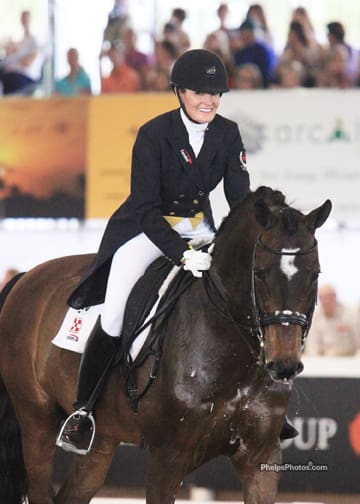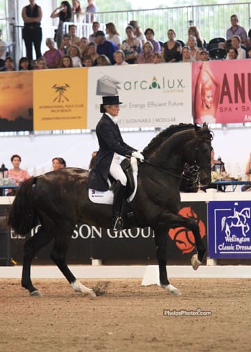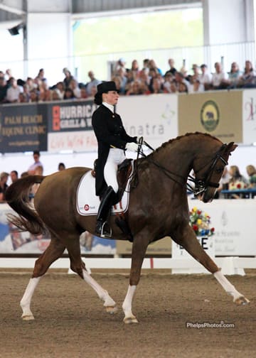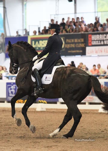 Finishing in second place behind Peters was Great Britain’s Charlotte Dujardin riding Valegro, a ten year old KWPN gelding co-owned by Carl Hester and Roly Luard. Dujardin’s score of 78.468% was nearly three points behind Peters, but it was a full five percentage points higher than the third placed pair, Tinne Vilhelmson-Silfven of Sweden on Antonia Ax:son Johnson’s 13 year old Rheinlander gelding Favourit, with a score of 73.255%. The WDM Palm Beach presented by International Polo Club Palm Beach is Dujardin’s North American debut. For Peters and Vilhelmson-Silfven, their placings in the Grand Prix are identical to the 2011 WDM Palm Beach on the same horses, though the scores are higher than a year ago. “I think we had so many good horses in this class,” said FEI five star dressage judge Gary Rockwell, president of the ground jury.