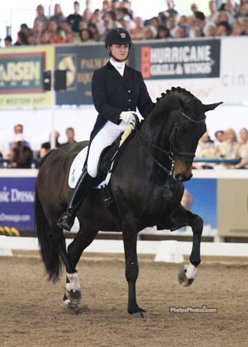 The 2012 WDM Palm Beach Grand Prix has also set records for spectators, with well over a thousand people in the stands and at ringside VIP tables on Friday afternoon. For the first time ever, USEF Network live streamed the entire competition in High Definition not only for the web, but also for smart phones. People from all over the world – from Canada to Germany to Japan – logged in on computers and mobile devices to watch the event. “I was really pleased with the number of spectators who came today,” said Noreen O’Sullivan of Wellington Classic Dressage, which is the Official Show Producer of the WDM Palm Beach. “It’s a wonderful statement about the state of our sport.”