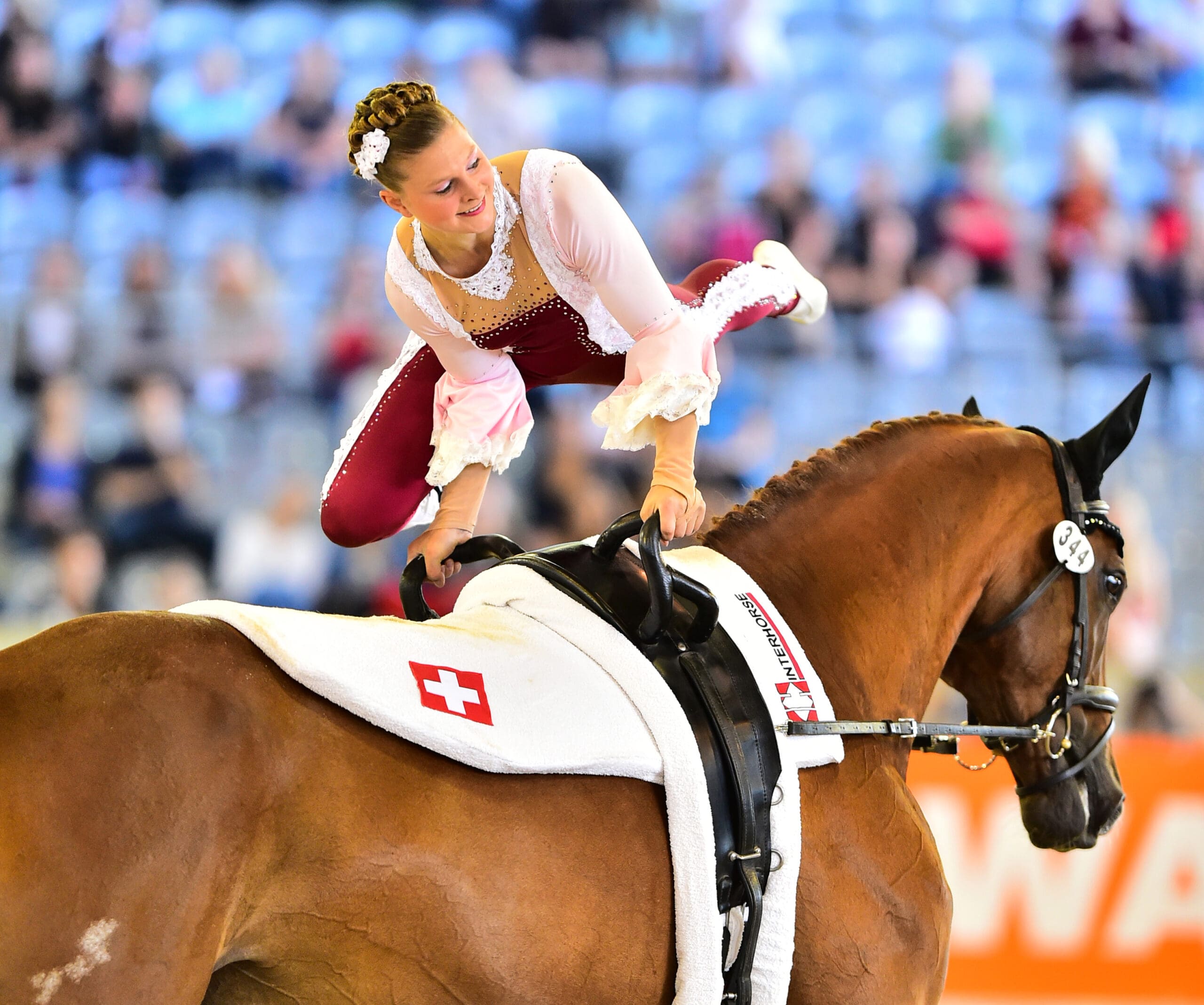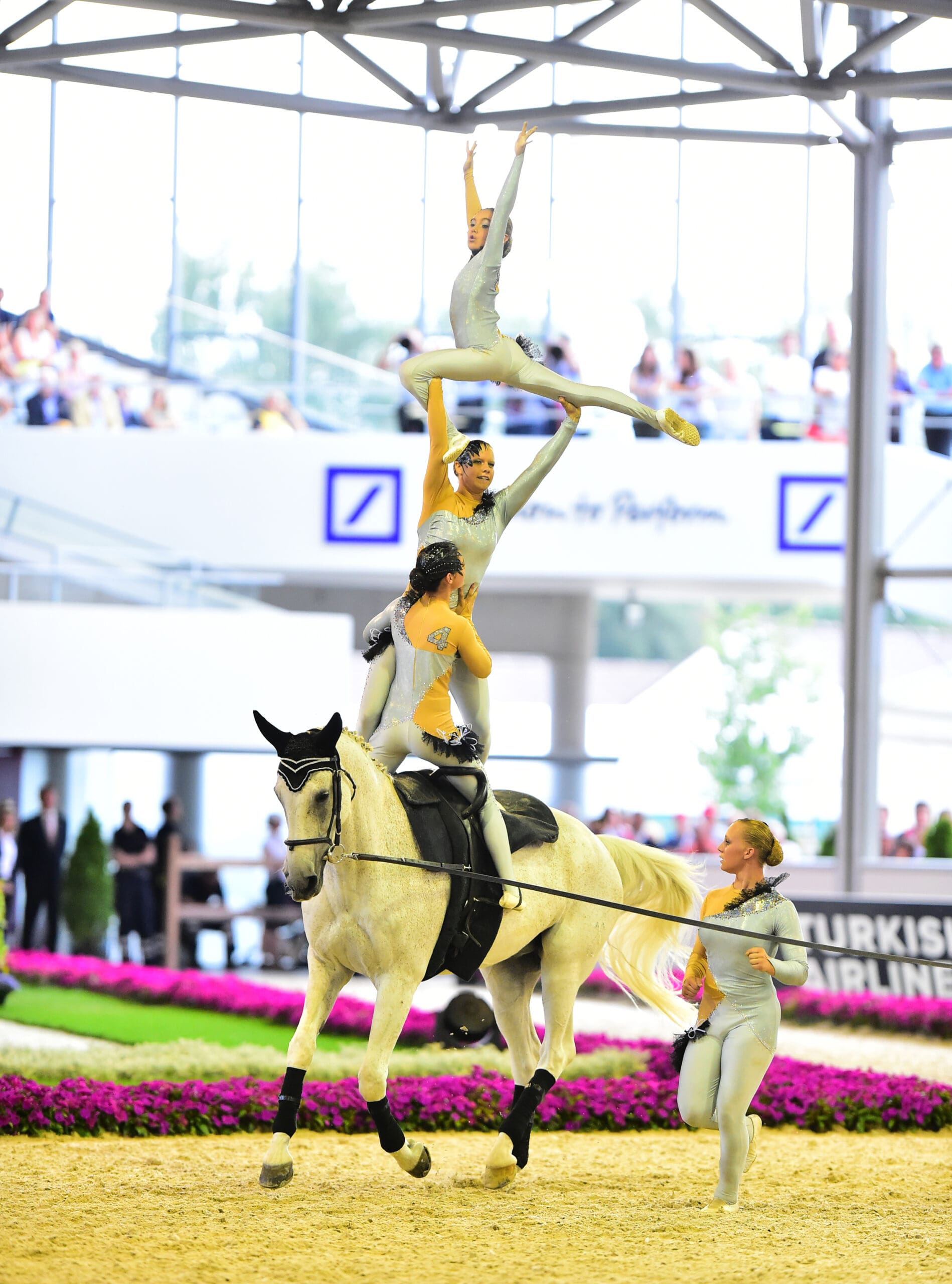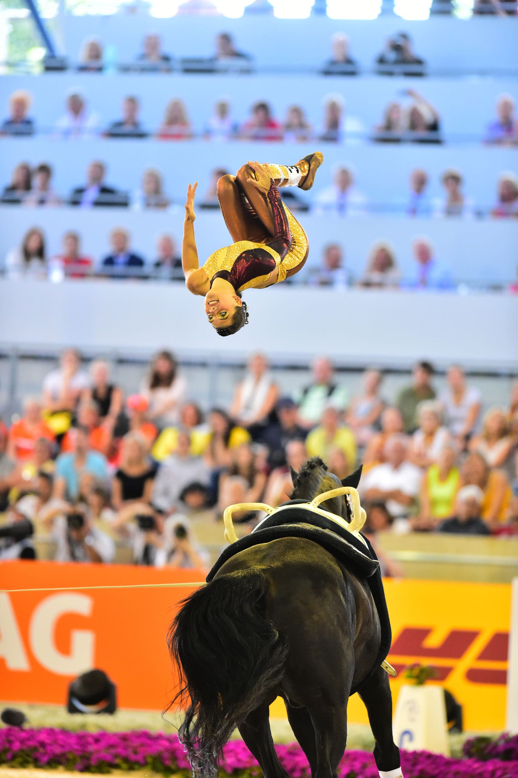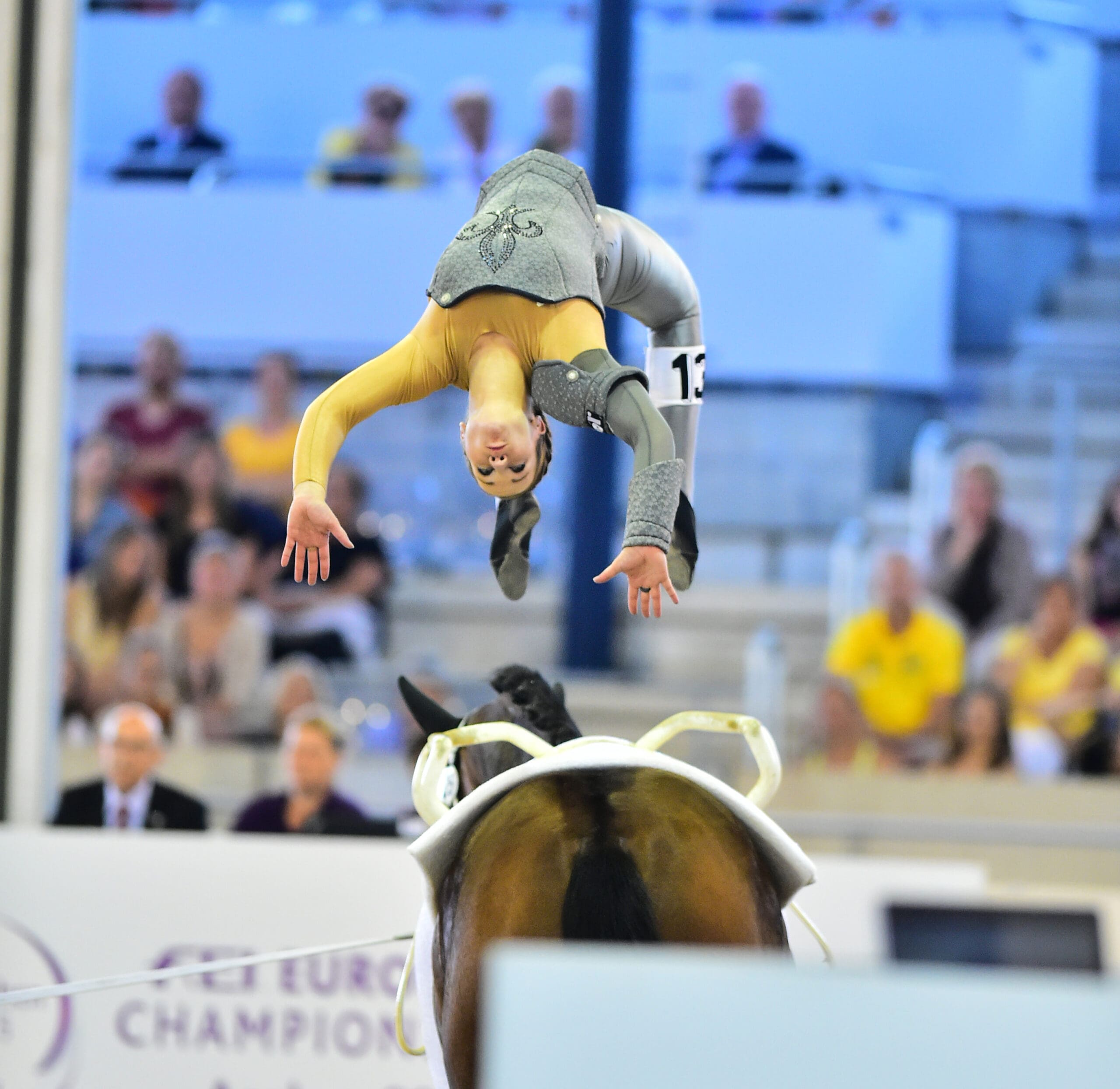 The atmosphere in Aachen’s Deutsche Bank Arena was at an all-time high, with Vaulting fans getting together on Facebook prior to the event to coordinate their colours. Spectators in the north stand wore black, while those in the east wore red and in the west stand they wore yellow to represent the host nation flag. And it proved well worthwhile when, in a competition filled with dramatic errors but courageous recoveries, Team RSV Neuss-Grimlinghausen took gold for Germany in the hard-fought squad final.