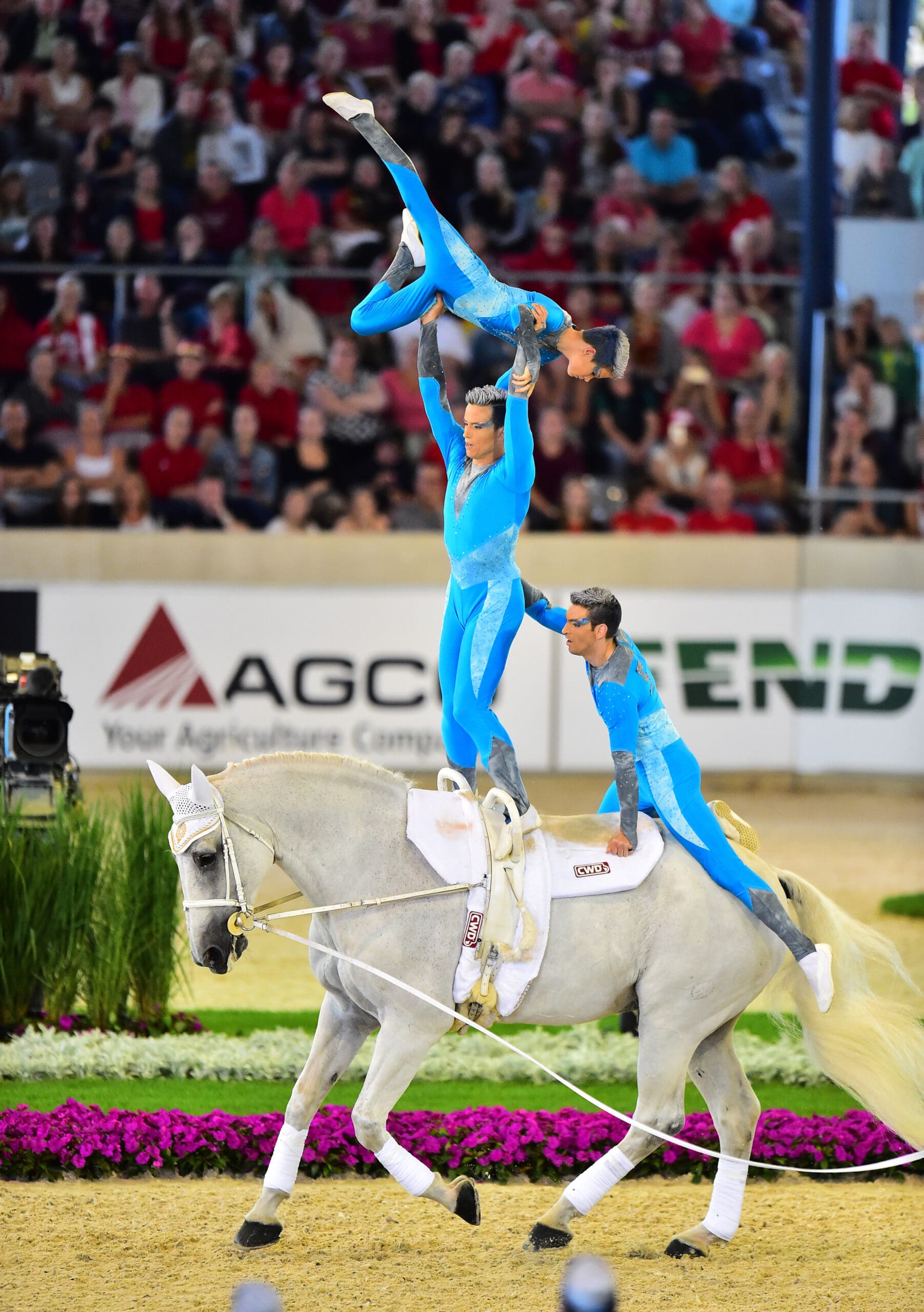 Team Ecurie de la Cigogne went out in front for France, with their flier, Christopher Robin Krause, and their fabulous horse Watriano R reinforcing a tremendously solid team effort that was filled with grace and elegance, ensuring it was a pleasure to watch. The strength of the three-tier movements was particularly impressive, with Krause holding position and presenting the picture of lightness and athleticism. When their score of 8.877 went up on the board, the 14-year-old and his older squad-mates Christelle Haenell, Cleone Fritsch, Clement Taillez, Remy Homberq and Anthony Presle put it right up to the remaining three teams. And one by one, they all felt the pressure.