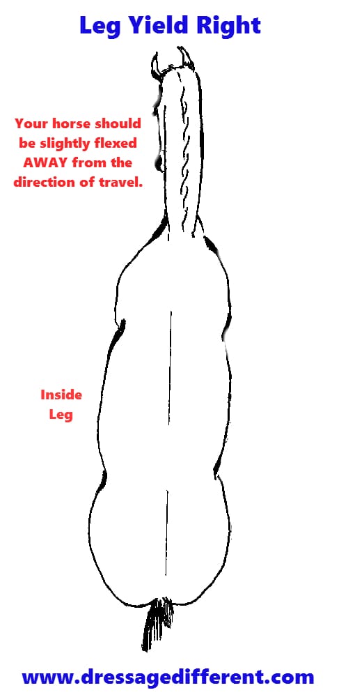 Many riders only know the leg yield as that annoying movement in first level. It is a murky concept to many riders, who are left scratching their heads as they go up centerline and hear that they were supposed to bend their horse THE OTHER WAY! And that they WERE YIELDING THE WRONG DIRECTION! And THAT IS JUST A DIAGONAL LINE! What is a leg yield? Why is your trainer abusing you with learning this movement? Why have it around at all? First of all, the leg yield is known as a suppling movement. It stretches the horse’s musculature laterally (aka from left to right and right to left). If you give yourself a big bear hug you will feel the muscles on either side of your spine stretch. It probably feels pretty good. In fact, I am going to do it now…. okay I am back. Notice that when you are bear hugging yourself, your arms are crossing. It is a similar mechanic that we ask of the horse when they are properly leg yielding, hence the suppling effect. In dressage we want suppleness, elasticity and strength. The leg yield is one of many techniques a savvy rider can use to achieve that end. It also enhances something called “lateral reach”. The more loose and supple the horse is laterally, the better they will be able to step sideways, in large, rhythmic strides.Feel that stretch across your back? That is a similar feeling that your horse will have with a properly executed leg yield.Suppling is not the only reason to leg yield though. The second reason is in the name itself “leg yield”. The horse must know to yield from the leg, to understand yielding aids in general. One of the basic tenets of riding is to yield from pressure. When that inside leg goes on you do not want your horse staring blissfully out into middle distance, debating the merits of timothy versus alfalfa. You want them to yield and there are a number of exercises using the leg yield to achieve that end. These exercises can be ridden in walk, trot and canter.Most leg yields are learned by turning up quarterline and yielding to the rail. Another option is the nose to the wall leg yield. This option gives the rider the opportunity to better monitor the angle and straightness using the rail, but use whatever works for you. Important: the horse’s poll is flexed AWAY from the direction of travel when leg yielding. Always. Forever. Until we are all dust and parrots rule the land, the horse’s poll is flexed away from the direction of travel. Is your horse flexed right? Then you two are leg yielding left. Is your horse flexed left? Then you two are leg yielding right. You can think of it like your horse is slightly indicating toward which leg you should be applying. Your equine partner is pointing at the calf that should be pressing against them.Do not treat your inside rein like the starter of a lawnmower!This leads me into another point – that the inside rein is a grossly overused piece of leather for many a poor soul attempting to complete a leg yield. Yes, the horse should have a slight inside flexion but the horse’s body should be straight. The leg yield forces the rider to coordinate the inside and outside aids. Yes, the inside leg goes on, but you do not pull on the inside rein like you are trying to start a lawnmower. The inside rein should be no more used than before the leg yield began. You as a rider need to develop a seat that allows you to apply the inside leg without using the inside hand as a balance beam. Nor do you want to use the inside rein to ‘pop’ the horse sideways, because you will then lose the shoulder and have a funky-looking jack knifed horse. This does not achieve any of the merits of leg yield and makes you look a bit silly. Even though your inside leg does press against your horse, your body should be moving in the direction of travel. Many riders, in their efforts to move sideways, lean or collapse away from the direction of travel. This is wrong. Your inside leg does apply pressure but your seat is centering itself over the horse as you both are moving in the direction you would like to go. Your seat rides the next step, not the previous one. If you lose the straightness of your equine partner then you must straighten your horse before proceeding sideways again. This is a hard lesson for some students to learn. More than a few enter into a leg yield fever and by god, they are determined to reach that letter come hell or high water. Don’t! Stop! When learning the leg yield, I suggest you attempt a few steps sideways, a few steps straight, a few steps sideways. This will allow you to monitor your straightness and correct your horse if he has drifted onto a diagonal line. When a horse loses his straightness and his shoulders fall onto a diagonal line then the hind legs are not crossing anymore, the lateral suppling is not happening and, well, it is not a leg yield anymore, my sweet, summer child.These sideways, forward, sideways steps will also allow you to monitor energy. You want each leg yield cocktail to be roughly fifty percent forward and fifty percent sideways. The western movement known as side passing is sideways with no forward steps. This is not what we do in dressage. Forward energy must be infused into each stride. The horse must be attentive and in front of the leg. If you attempt to leg yield and suddenly the rhythmic trot you just had begins to deteriorate, then you must make your leg yield line as shallow as necessary to maintain quality of gait. Once you and your horse improve in understanding, balance and technique then you can begin making your leg yield more steep. The same goes for the nose to the wall leg yield with the angle you are requesting as your horse steps down the wall. I suggest beginning to learn the leg yield with a shallow line at the walk, so you can begin coordinating your aids slowly. Remember, all of the rules of straightness and energy still apply at walk and canter.
