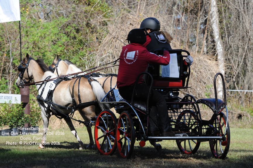 The sport has its challenges, and no amount of planning, help, or training can prevent some of the things that can happen. After our last event where I hit a post with the carriage pole, I noticed it was twisted, and a bearing was broken. Not a simple fix either, a new pole had to be shopped from where the carriage was build in Poland arriving the day we were moving ponies and equipment to the show. A special thanks to Jack Alvarez of Driving Esentials who made it happen. A week before, my other carriage used for dressage and cones needed brake pads replaced, which also needed to be imported. But Dana Banfield at the Gayla Driving Center in Georgetown, Kentucky came to the rescue overnighting a pair he had on hand. With both vehicles fixed within hours of the event, and multiple trips back and forth to our winter home base just 30 minutes from Live Oak, we didn’t get a chance to take a good look at the marathon course until Friday afternoon after Dressage. Normally competitors begin walking the course of 7 obstacles or hazards as they are also known as soon as they arrive at the show, beginning Tuesday or Wednesday. It can take that long to learn the routes, and determine the best and fastest way to navigate in our case 5 gates, A-E.