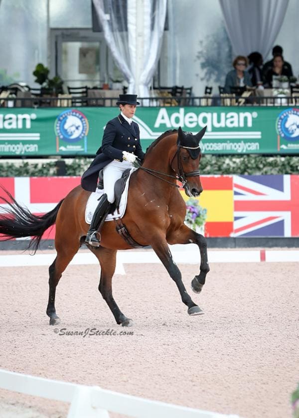 Sweden’s seven-time Olympian Tinne Vilhelmson Silfvén added another notch to her dressage belt to cap a tremendous season with her talented string of horses when she stood grand champion in the Future Challenge young horse Prix St. Georges series, sponsored by Diane Fellows’s company Buffalo Wild Wings.