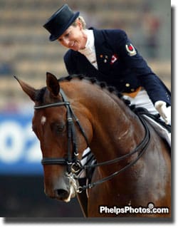 This week’s Training Tip is brought to you by ShowChic. OK, we all get told at some time that our horses are not Forward enough. I certainly did when I went to train with Wolfram Wittig in Germany this summer! I told him that my lovely mare was much more forward than a few months previously, and he asked me (only slightly joking) “were you doing it in slow motion before?” So, off we went for a gallop! I think forward is not always the best term, because it is easy to confuse fast with forward. And while we dressage riders really should desire that our horses are always forward, they should rarely be really fast. Fast means that the horse speeds up the tempo of the gait – and if the tempo of a gait is too fast, there is very little time for a swinging back, suspension or cadence in the gait. Thus the quality, balance and beauty of the gait is lost. A horse can be fast without being forward. This sounds weird, I know, but it’s not if you know our dressage definition of forward. Forward in a dressage sense means that the horse reacts instantly to the leg aid, and responds with a forward desire and flexion of the hind legs. This can be apparent (or very apparently not) in piaffe, which has almost no forward motion.What we dressage trainers really want most of the time when we yell more forward! is actually more in front of the leg! Yah – sometimes it is just that you need to go faster, but more often we want your horses (and ours, believe me) to react quicker and more correctly to your leg aid. I tell my students that I don’t want the horse to even think about your leg aid, I would like to bypass the thinking part and have an unconscious reaction trained by consistent repetition. I don’t believe horses think about the fly that just landed on them before swishing it off with their tail – they just react. Why do they react? Because if they don’t, their subconscious knows that in a split second that fly will nibble them. So their body just reacts, as the brain has learned the consequences of not reacting (chomp!)A horse that is correctly in front of the leg is a dream to ride – the rider doesn’t have to push all the time to create energy, so instead the rider gets to focus on all sorts of fun stuff, like relaxation, throughness, balance, suppleness and swing – all those things that make dressage riding like dancing with your horse, and a joy to watch.Shannon Dueck is a contributing writer to the ShowChic News monthly newsletterInternational Grand Prix trainer and competitor Shannon Dueck is a Pan Am Games Individual Silver Medalist, and has competed at both WEG and the World Cup Final. She has trained with Bert Rutten of the Netherlands, Kathy Connelly, Lars Peterson, Hubertus Schmidt, Robert Dover, and most recently, Wolfram Wittig while in Germany this past summer.
