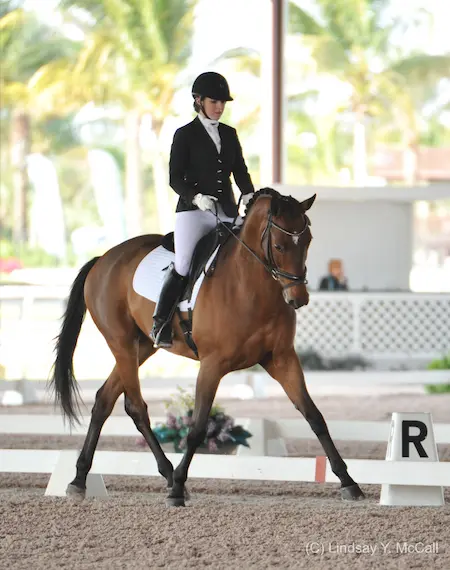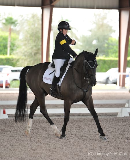 Peavy noted, “This show felt great. It was our first show in Wellington and both my horses have changed and improved so much this year. They listened to me very well and they did everything I asked of them. It was a great start and we still have room to grow this season. Overall I am very happy with it. In December 2014, I moved down to Wellington and since then we have been working on our young rider movements and practicing some of the para-dressage movements as well. Since showing at WEG I am not nearly as nervous now. WEG was such a learning experience and everyone was so helpful and supportive and Ozzy was amazing for me. I am proud of how far Ozzy has come. He has more muscle, strength, and confidence in himself. I can tell he’s gone from a 7 year-old to a 9 year-old since we bought him. My tests have been pretty good this weekend. On Saturday’s individual test, I enjoyed that he was very forward. Although he was excited he payed attention to me very well. I also enjoy noting the face that he goes well in a snaffle now. With Lancelot I have enjoyed his canter work. It is his stronger gate and because of that he felt very steady. He’s a great horse calm in mind and body.”