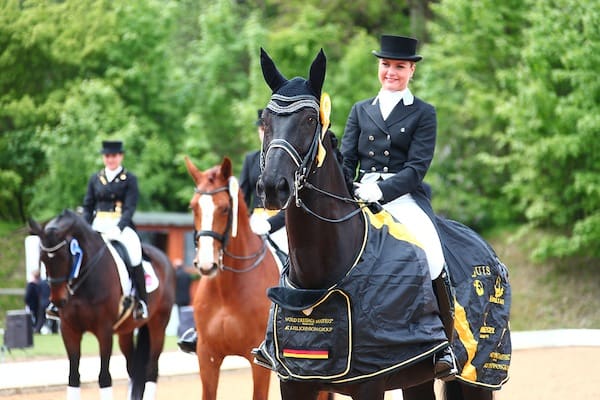 Valentina Truppa was very happy with her second place and her scores. “My horse Eremo did a great job and I am so pleased with him.” Truppa should be. The 11-year-old Italian-bred gelding, by Rohdiamant x Weltmeyer danced in the piaffe and the passage and moved not only himself and Valentina to score 76.510 points, but moved the entire audience to applause. “He is my new star in the stable and he can go very far”, she said and continued: “It was fantastic to be able to take him here, I also have Chablis with me that I rode in the WDM Palm Beach earlier this year, but Eremo is a greater mover, and to take him here to Munich is a great pleasure. It’s actually one of the best outdoor competitions I know. I love to ride here!” The results in the WDM Grand Prix makes it even more exciting for Sunday’s Finals in the Nürnberger Rider Ranking that will decide what rider will go home with 25 000 Euros more in their pockets. The battle stands between two riders – last years’ winner Anja Plönzke and the Swedish WDM “veteran” Tinne Vilhelmson-Silfvén. Who wins will be decided on Sunday after the Grand Prix Freestyle.