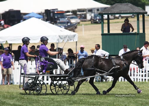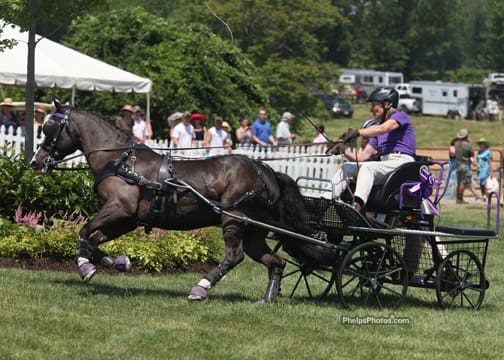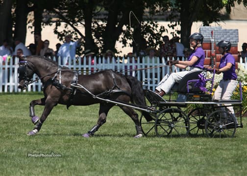 Bouncer recently gave a “scurry” demonstration with driver Kate Shields at the Upperville Horse Show, and once again Sybil’s loving family was on hand with raffle items to continue their fundraising efforts. The color for Pancreatic Cancer is purple, and in the driving world more and more competitors are wearing the color purple in solidarity and in memory of Sybil. You can shop the Pancratic Cancer Action Network “Purple Store” for some items which will help support their efforts.