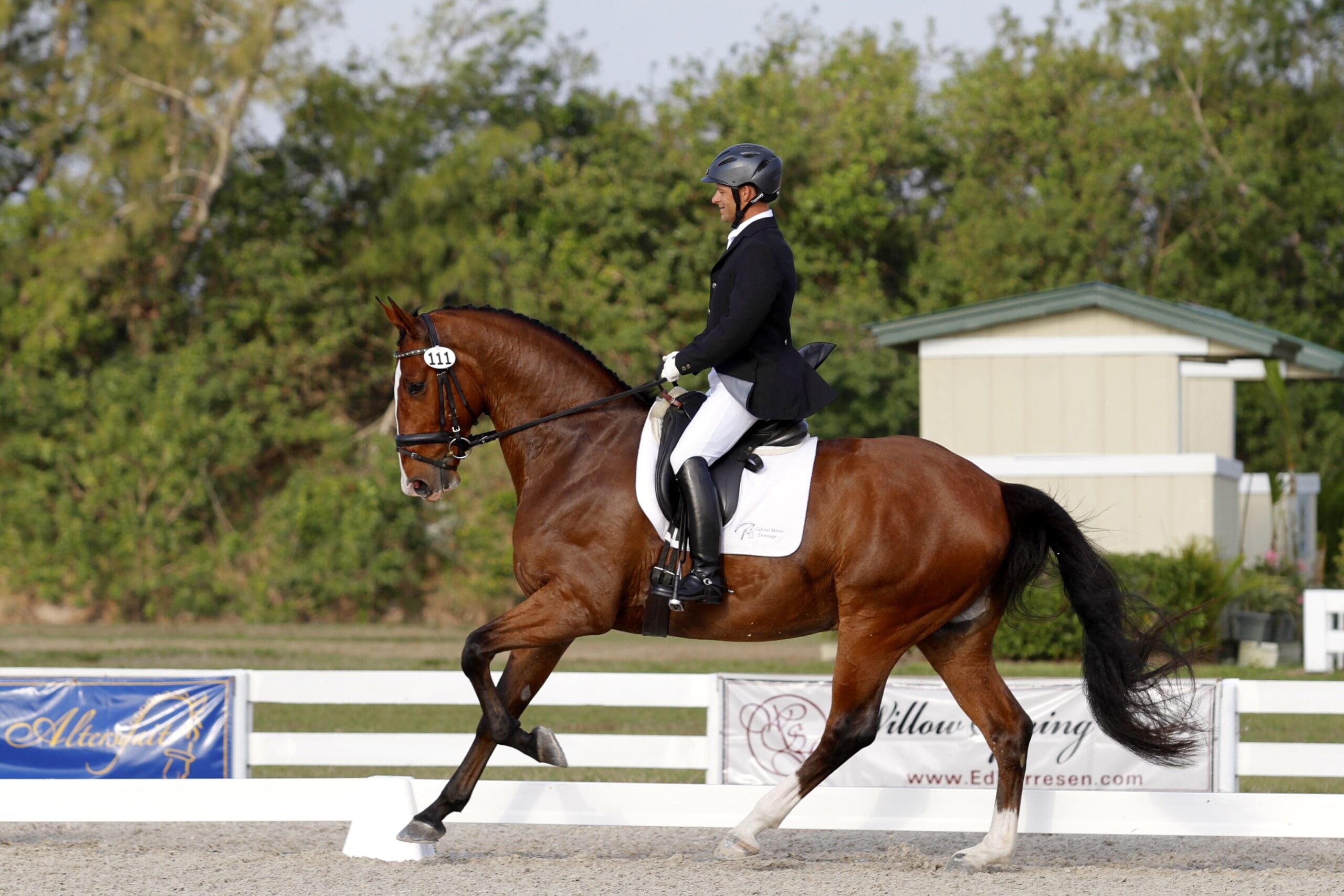 The FEI or Equivalent Test of Choice class capped the day, providing a preview of several horses ready to make their marks in CDI competition. United States Dressage Federation President George Williams had the highest score of the class, riding Betsy Juliano’s Riccidoff to earn 66.118%. Riccidoff was the sales topper at the 2010 Performance Sales International (PSI) Auction in Ankum, Germany.“I was pleased with him and with the things we’ve been working on,” Williams said. “He was very good and obedient with the wind. Overall I was very pleased with his attitude and how he tried in there. Right now we’ll continue with the Prix St. Georges and possibly do the Developing Horse later in the season.”Megan Glynn put in a strong effort in her first Intermediaire 1 test to place second, earning 64.539% with Tyto. “The test went very well,” Glynn said. “This was my first I-1. I remembered it! Thank God!” she laughed. “We’ve been doing St. Georges all season, and we’re going into our first CDI in two weeks. Ramping it up – I’m really excited!”Louisa-Marcelle Eadie finished third with Odin on 62.961% and sixth with Roseview’s Donna Classica on 61.649%. “We had a windswept ride!” she said after Odin’s test. “So we had to get his concentration back a little bit.” She noted that Odin is just turning 8 and was competing in only his second Prix St. Georges.“I’m happy with him,” she added. “He’s schooling a lot of the Grand Prix now, but obviously he needs a lot more show experience. We’ll work on a lot of the small tour things for now and continue to work on his Grand Prix at home.”