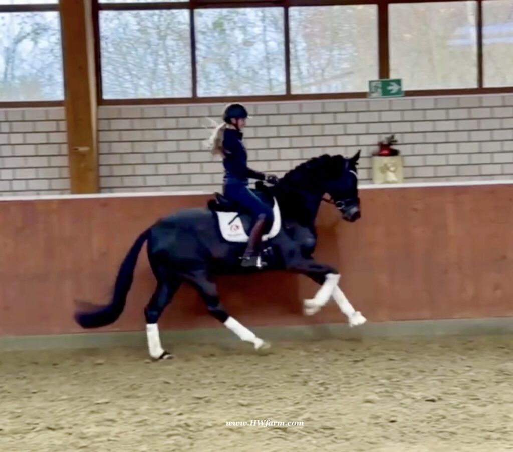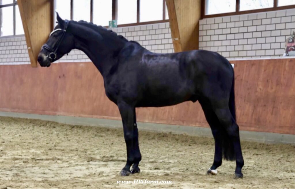EscaHit HW, equipped with phenomenal competition genes, is a horse of amazing quality and super fancy mover who knows to impress due to his type and work ethic. This stunning horse has it all. He has a super nice, chiseled head, big stallion neck (he’s a gelding!). He is a dream come true. His hooves barley touch the ground. He loves to please his handler and rider and is a fast learner. This boy eagerly works under saddle and loves his job. He is breathtaking to watch in the dressage arena and with his quick, far reaching hind leg, passage and piaffe will come naturally to him.