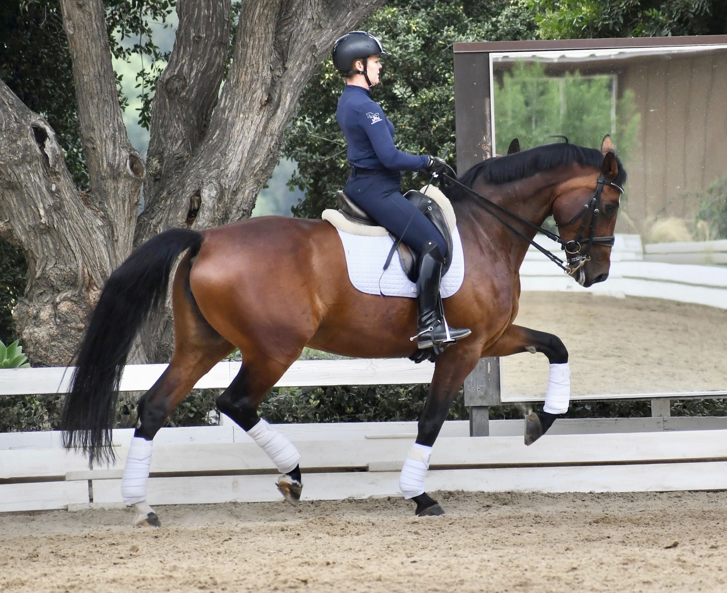 This impressive mare by the Triple World Champion Sezuan, has incredible bloodlines and a proven Prix St Georges show record. Fiona has wonderful changes and lateral work and her amazing work ethic shines thru in her daily work. She is currently schooling Intermediare-I and shows talent for piaffe and passage.