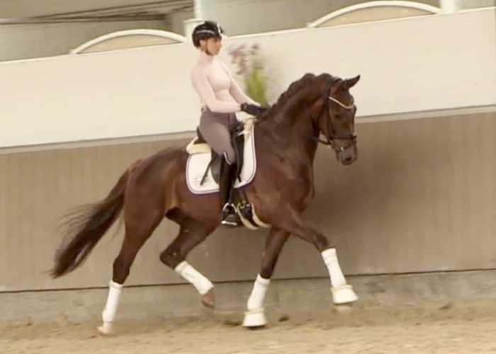 With him, there is no limit to any level, he will compete in the big ring and be a phenomenal FEI horse. He is very elastic and a fast learner, amazing cadence. This gentleman has the right attitude and ability to do it all, he will be seen in the upper levels, collecting the blue ribbons, one after another.