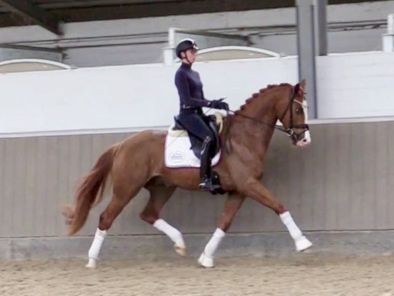 Fürst Quotenkönig HW is supple and has a ton of air time. He just floats above the ground. With his free shoulder and huge grundschwung, he swings nicely through his back. This extremely talented gentleman has international potential.