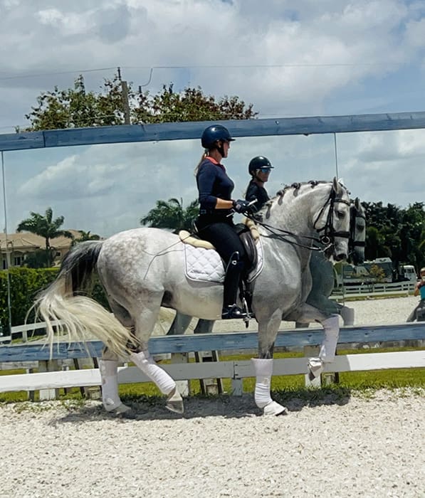 Kelio is an expressive 16.1, grey PRE gelding ready to excel in his training. He is a very forward thinking horse and perfect for a rider who just wants to enjoy their ride with ease. Kelio is currently schooling 3rd level with the potential to go up the levels quick as he picks up lessons and the elements easily!