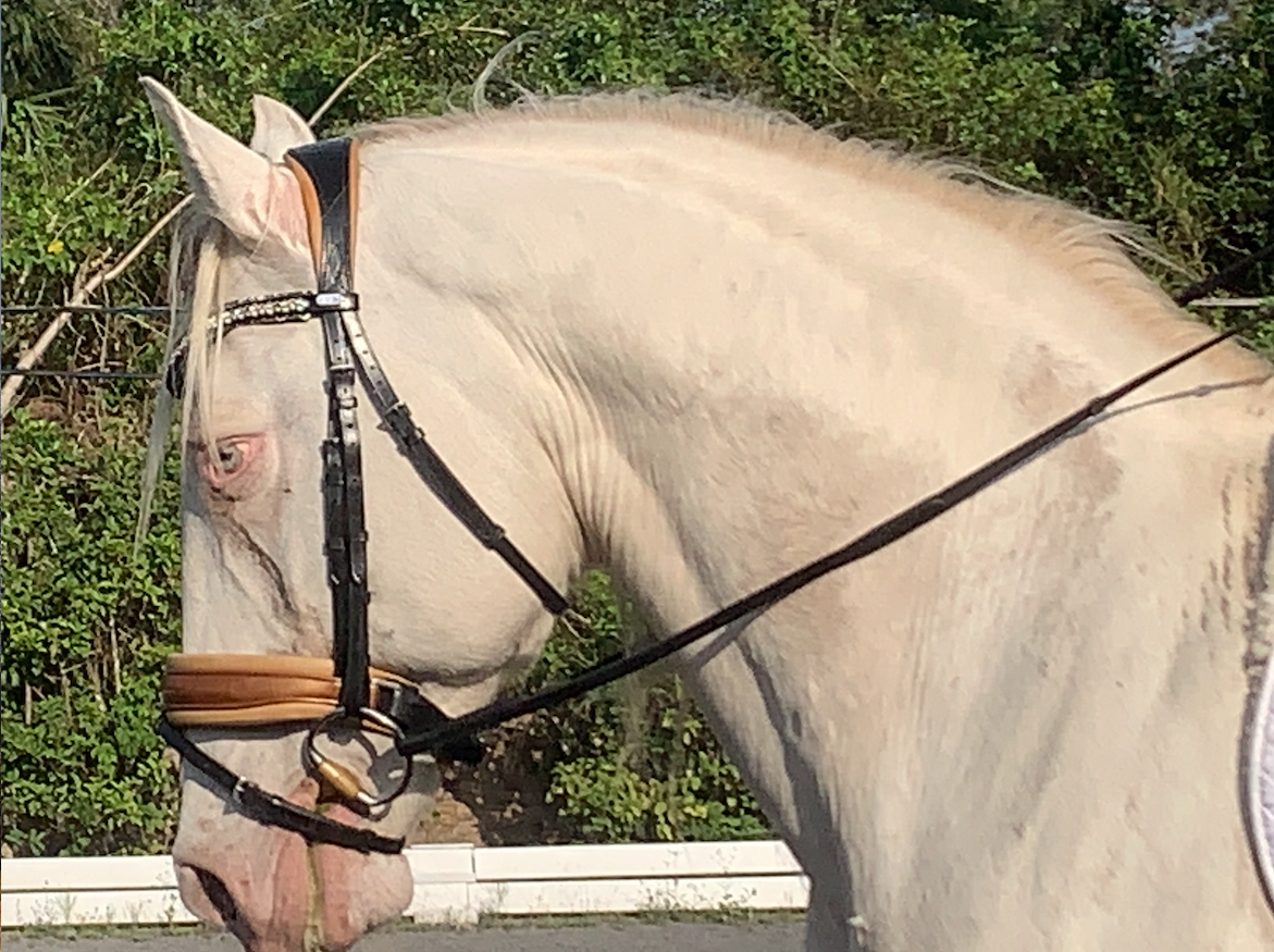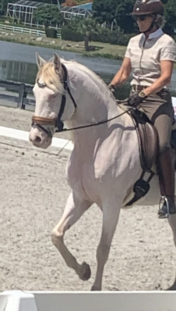 Former working equitation horse. Spent the last year in dressage training. A willing partner who craves connection with “his person”. Shown successfully in lower-level dressage -June 2022 and has the potential to go up the levels. Safe on trails and bareback. Ideal natural horsemanship candidate. (Could do western dressage, too) 15.1 hands, 15-years-old, sound stunning Cremello.