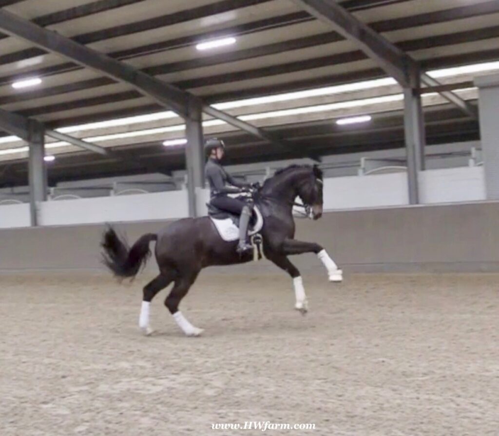 He is fabulous and easy to ride, light in the bridle and super nice to sit. Sweet, super pretty, best genes, lofty movement, definite FEI prospect, successfully shown, including 3rd level!