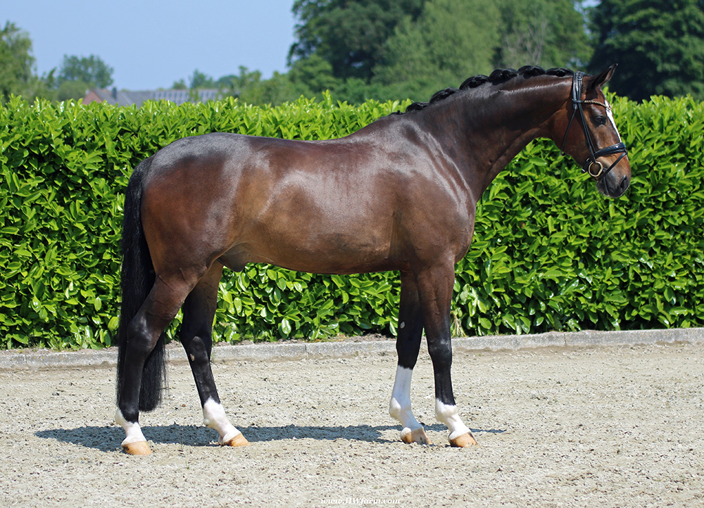 Quintano HW, is by the sensational stallion Quotenkönig, Vice Bundeschampion 2012, Westphalian Champion 2013 and 2014. BundesChampionat 2015, 4th place, WorldChampionship 2015, 8th place in the final round, victories in 3rd and 4th levels, by BundesChampion Quaterback – Fürst Piccolo – Sandro Hit – Contender, who was just licensed for Hanoverian and Oldenburg in Germany.