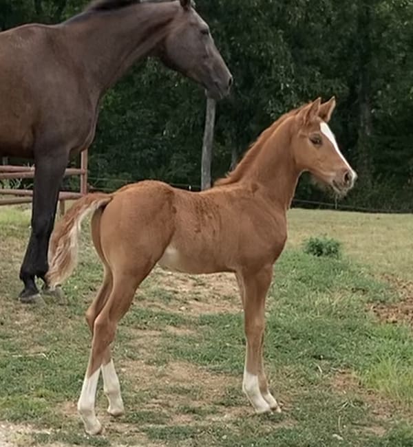 Born on June 12, 2022, this stunning colt arrived by Rotspon out of a Florestan/Weltmeyer mare! Dressage Pedigree overload! Wow, Wow and Wow! He is friendly, confident and athletic and we couldn’t be more pleased with him. Right after birth this gorgeous colt gave the impression he was much older; super smart and his athletic conformation was evident right away. He already picks up his feet, baths and loads onto a trailer. He whinnies when we enter the barn and stands in front of his bowl patiently. Such a quick learner. He is definitely one of kind and rare!